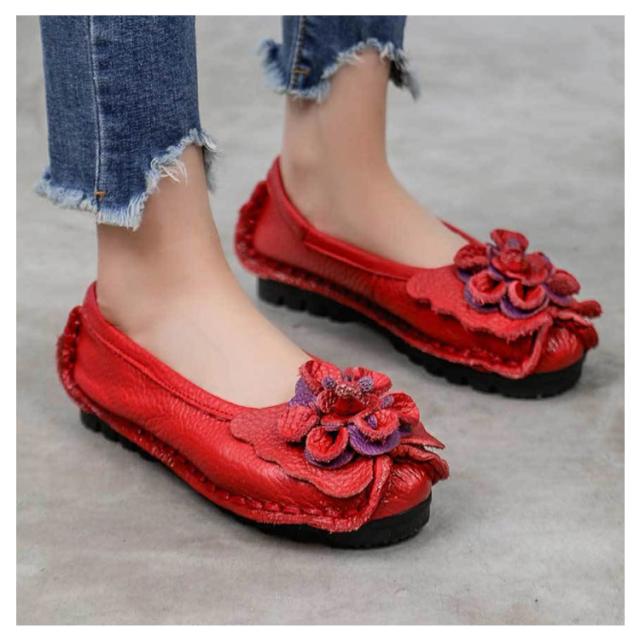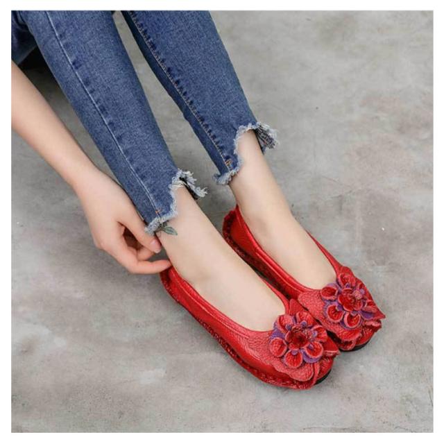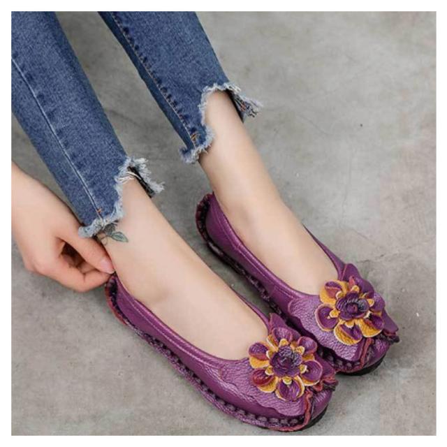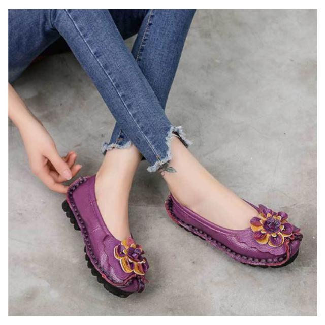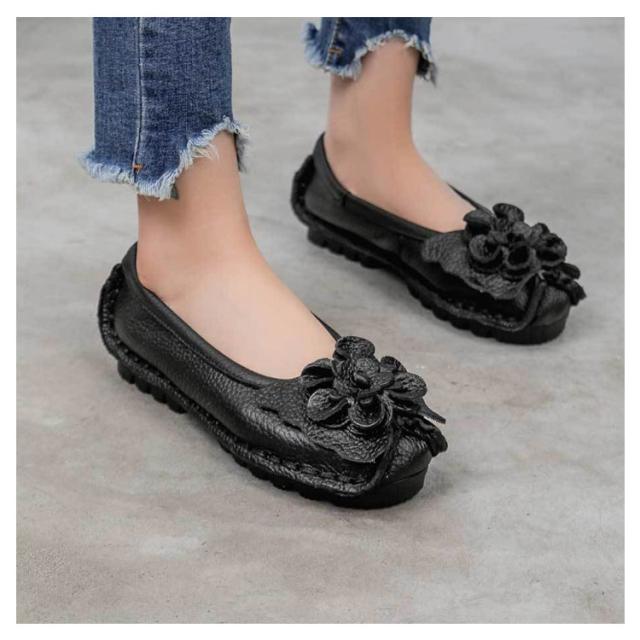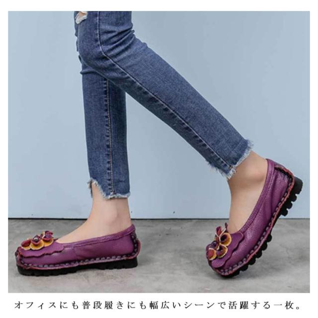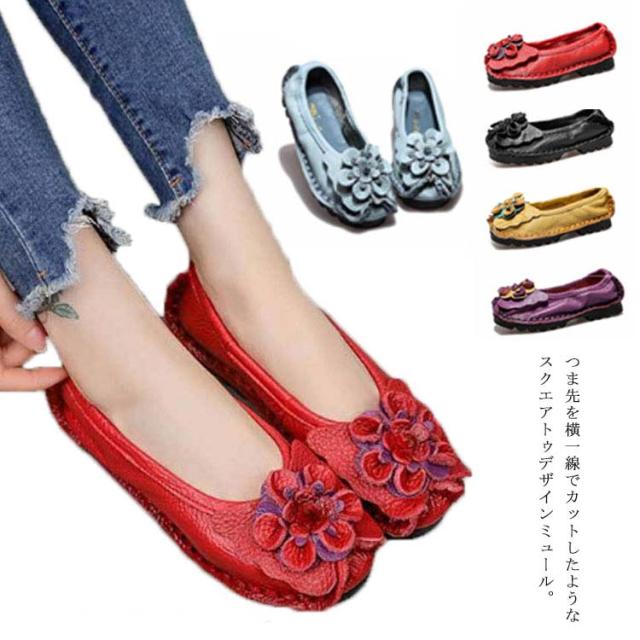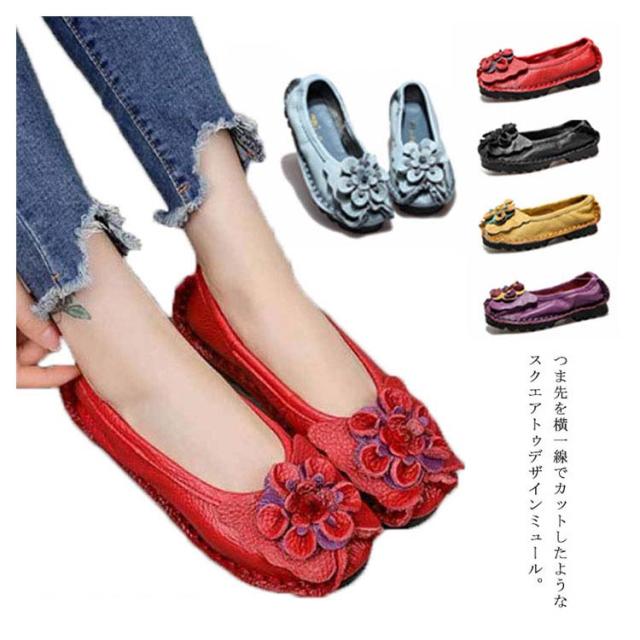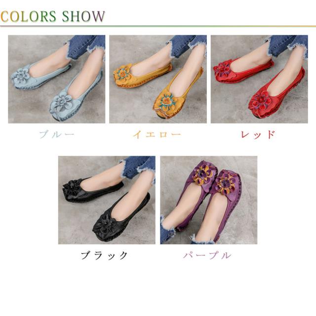 ラウンドトゥパンプス レディースパンプス ローヒール 花 ぺたんこ スリッポン クッション レディース フラットヒール エスタシオン レディース 切り替え フラワー 幅広 ワイド 女性 婦人靴 春夏 靴 滑り止め オフィス用