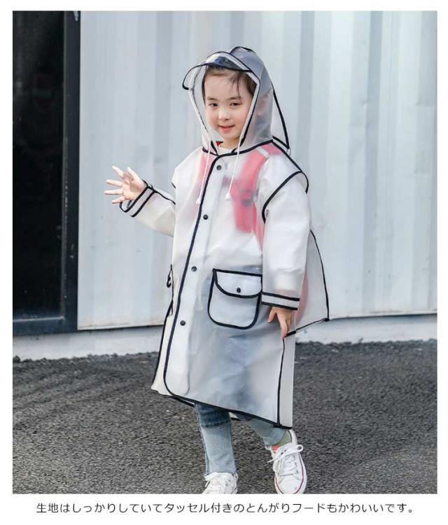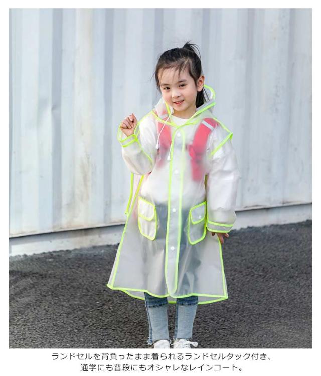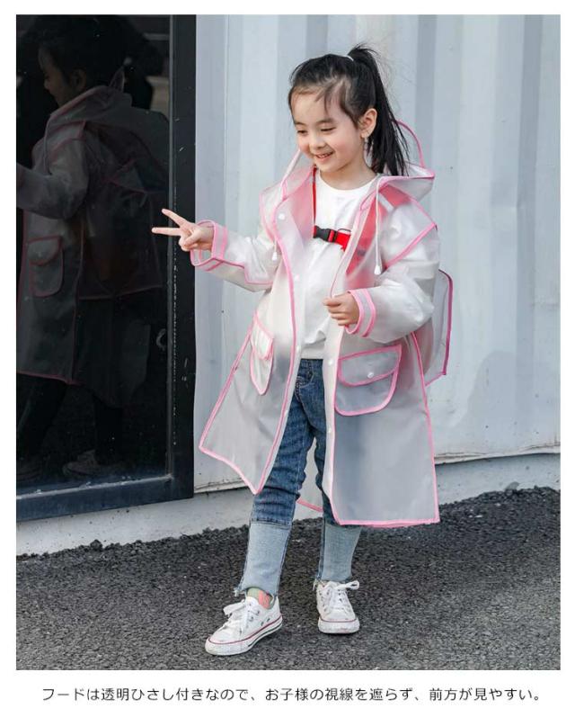 【送料無料】キッズ レインコート ランドセル対応 女の子 男の子 60-140cm 幼児 半透明 男女兼用 レインウェア 袖あり ランドセルレインコート とんがりフード 撥水 ポケット付き 雨具 通園通学 通学 入学準備 小学生 子供用