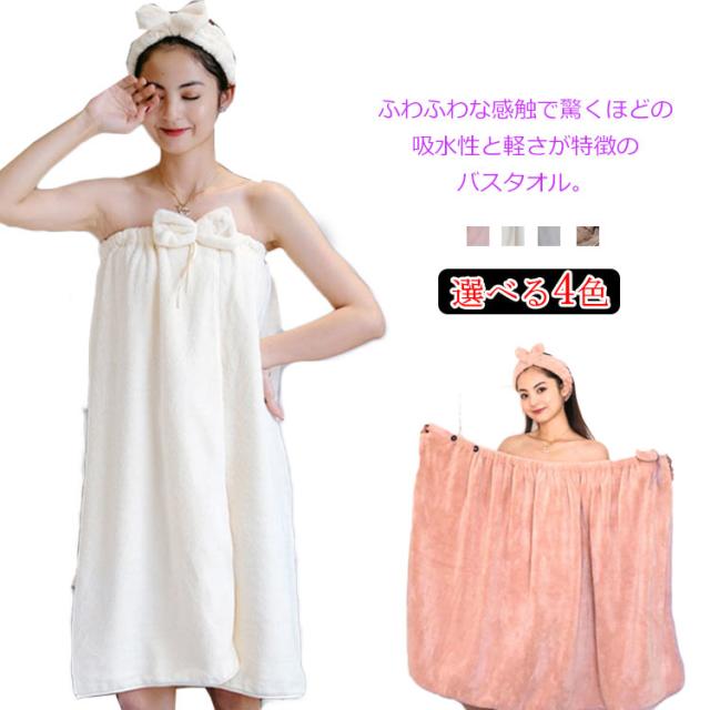 バスタオル 着れるバスタオル 大判 レディース キッズ お風呂 ワンピース タオル バスローブ 吸水 速乾 厚手 ふわふわ バスタオル ボタン 落ちない 蝶結び ギフト