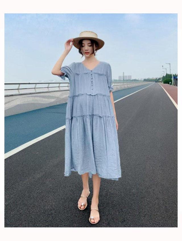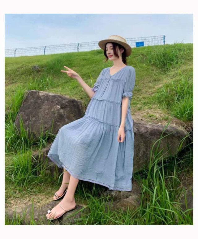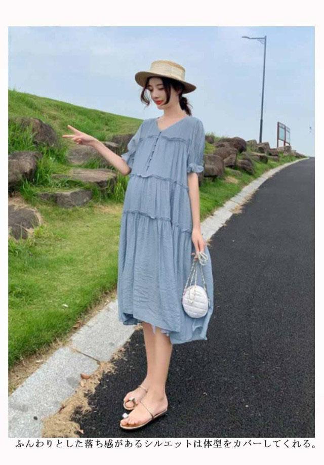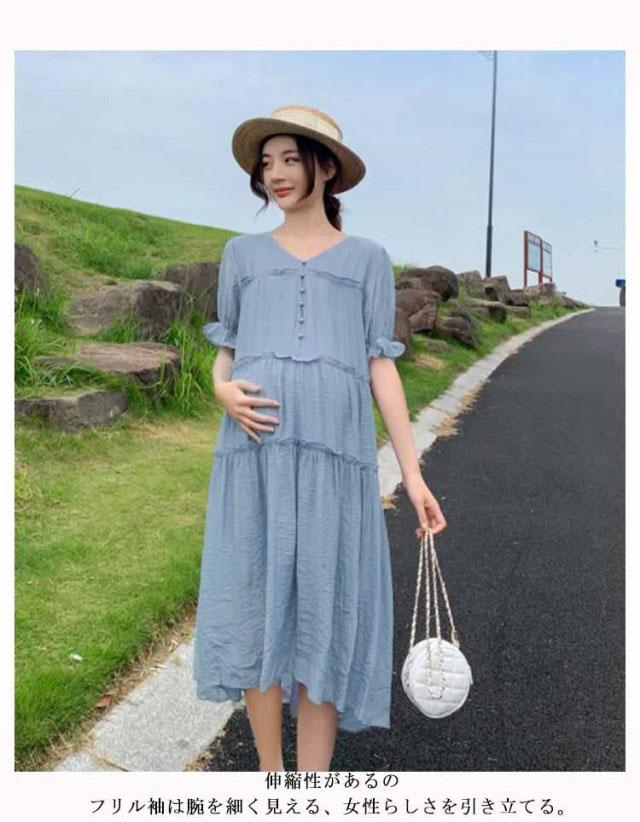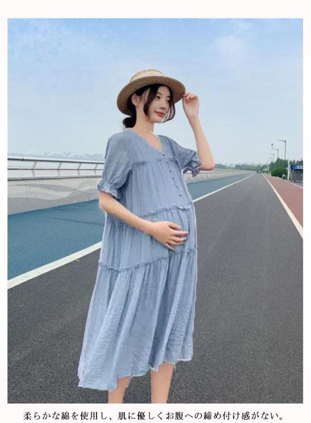 マタニティウェア ワンピース 半袖 夏 授乳服 前開き 体型カバー Vネック 大きいサイズ カジュアル おしゃれ 産前産後 妊婦服 ママ お出かけ 無地 上品 フォーマル マタニティドレス 送料無料
