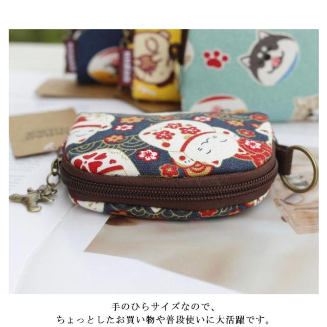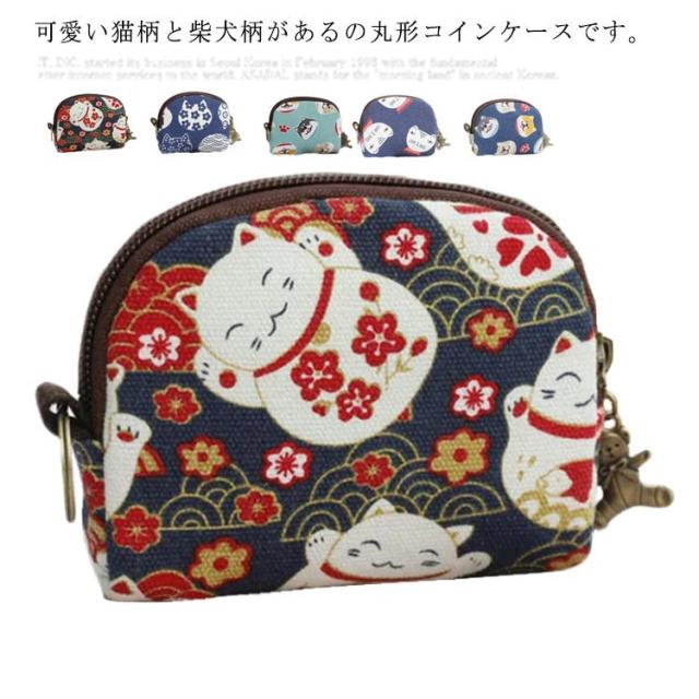コインケース 丸形 ミニ財布 小銭入れ レディース 和風 まねき猫 柴犬柄 かわいい おしゃれ 小物入れ カード入れ ポケット付き 雑貨 お祝い ギフト プレゼント コンパクト 小さい 送料無料