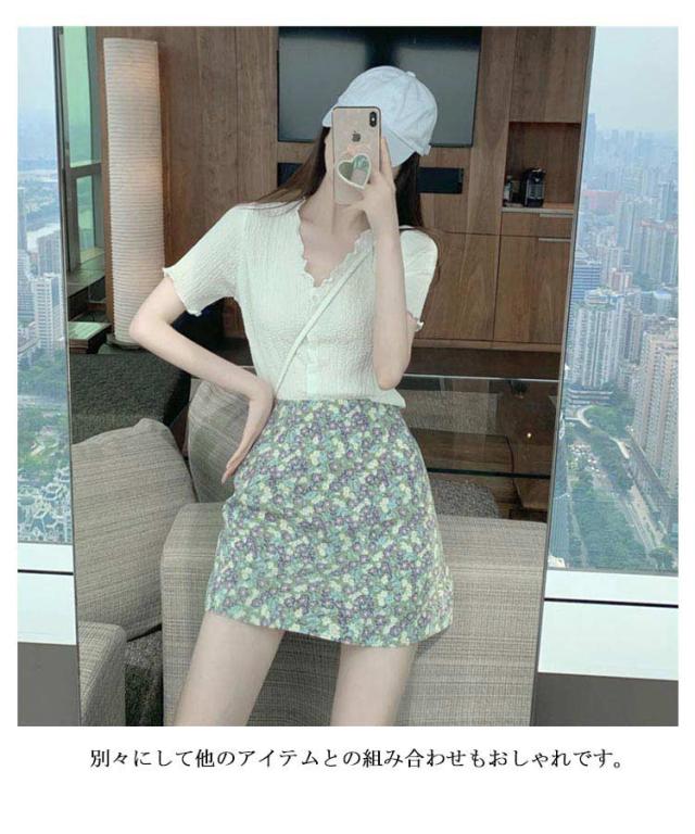 | 半袖シフォンブラウス+ミニスカートの上下2点セット♪ 首回りがすっきり見えるVネックサマーニット♪ 衿ぐりと袖口メロウフリル仕様で女性らしさを演出してくれる♪ ボトムが可愛い小花柄ミニスカートです。 別々にして他のアイテムとの組み合わせもおしゃれです。 普段着からキレイ目まで大活躍です♪ | |
