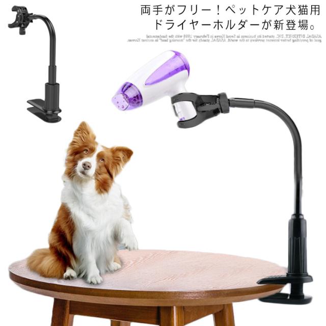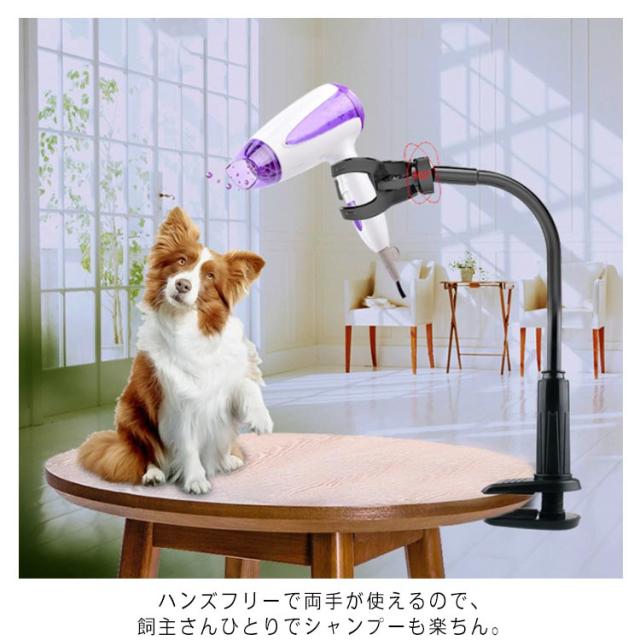 ペット用品 ドライヤークリップ ドライヤースタンド ハンズフリー スタンド ペット 犬 猫 ドライヤーホルダー 犬トリミング台 ヘア フリーハンド ドライヤーハンズフリー ドライヤー固定 立てる 360度 回転可能 伸縮 黒 ブラック