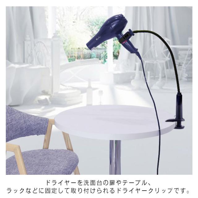 | ドライヤーを洗面台の扉やテーブル、ラックなどに固定して取り付けられるドライヤークリップです。 グリップをくるくる回すだけで簡単に調整できます。 両手フリー!様々なシーンで大活躍間違いなし。 | |