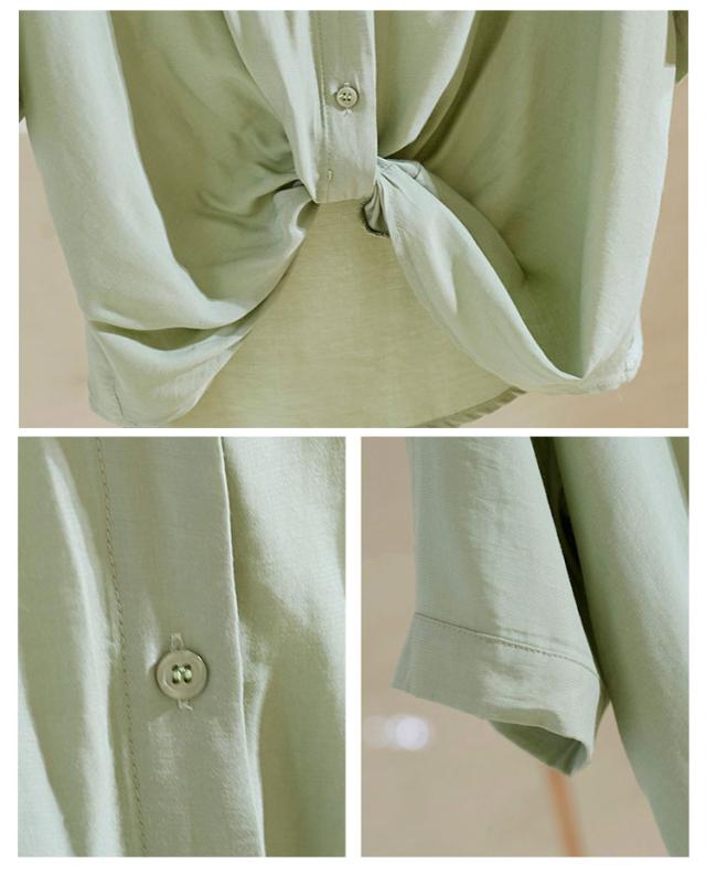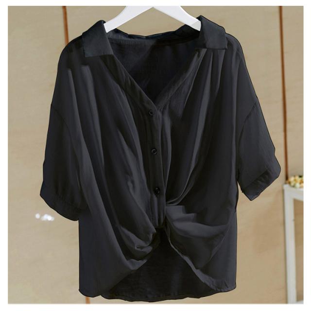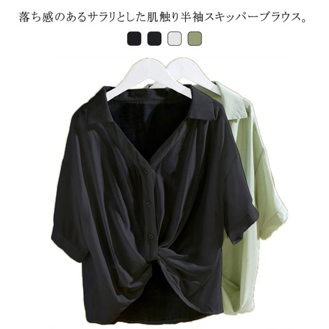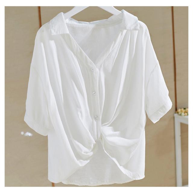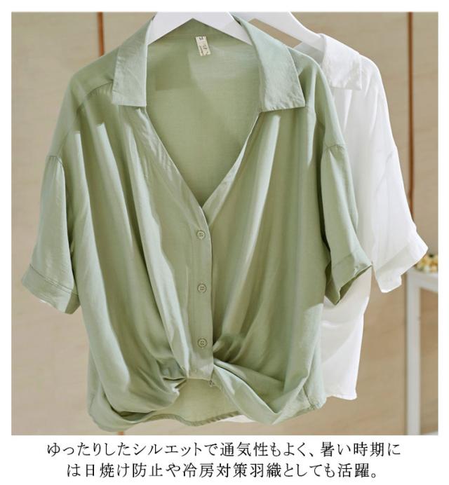 送料無料 シャツブラウス Vネック レディース ブラウス 綿 コットン 半袖ブラウス とろみシャツ カジュアルブラウス おしゃれ 透け感 日焼け防止 トップス 前開きシャツ 薄手 オフィス 上品 通勤 OL ビジネス