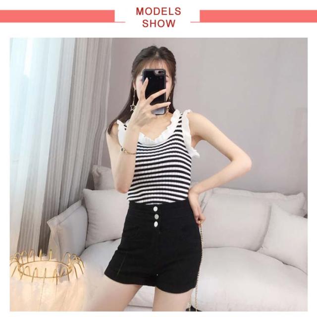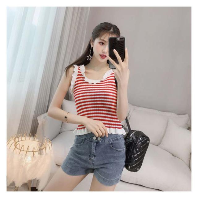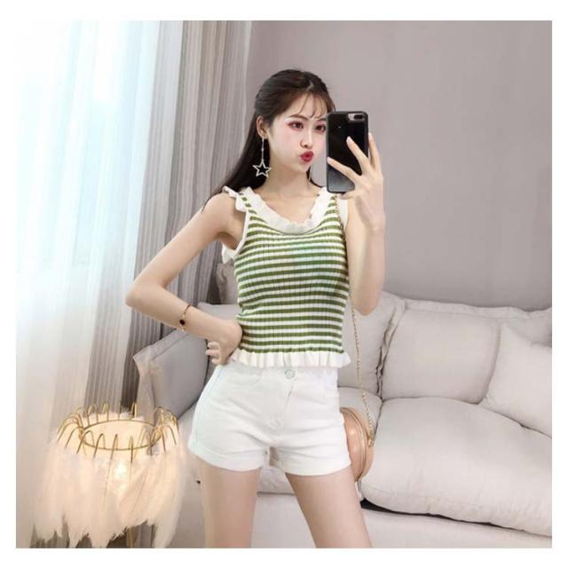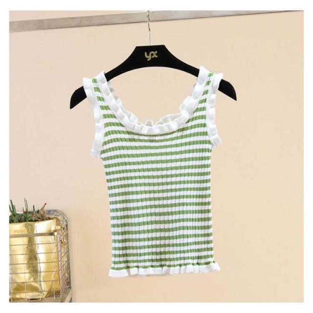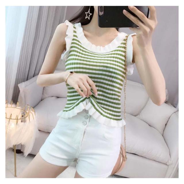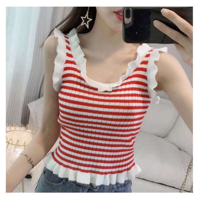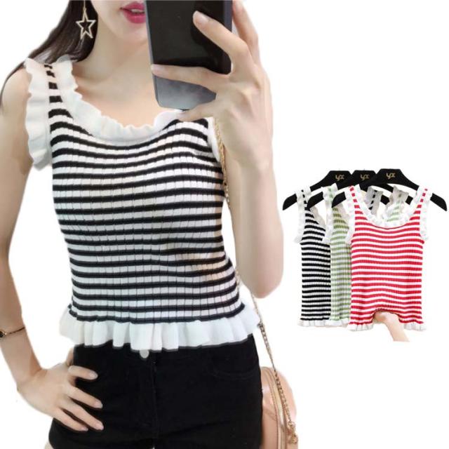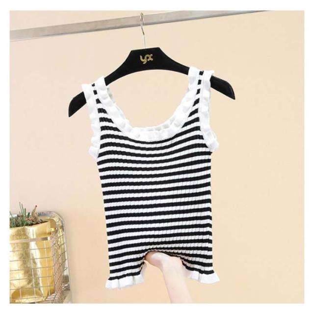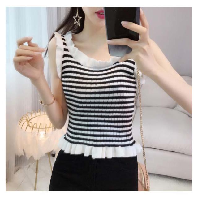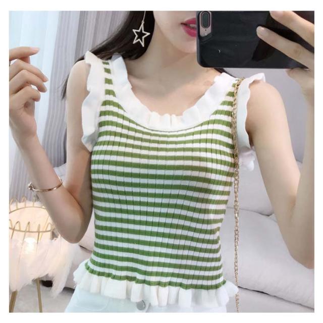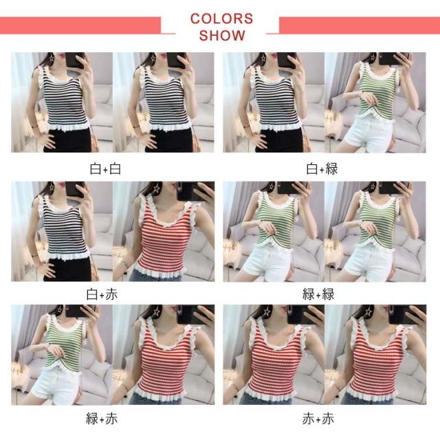 レディースキャミソール2点セットニット夏ボーダー柄フリルインナータンクトップキャミブラウスノースリーブフリルキャミソール送料無料シンプルカジュアルおでかけ