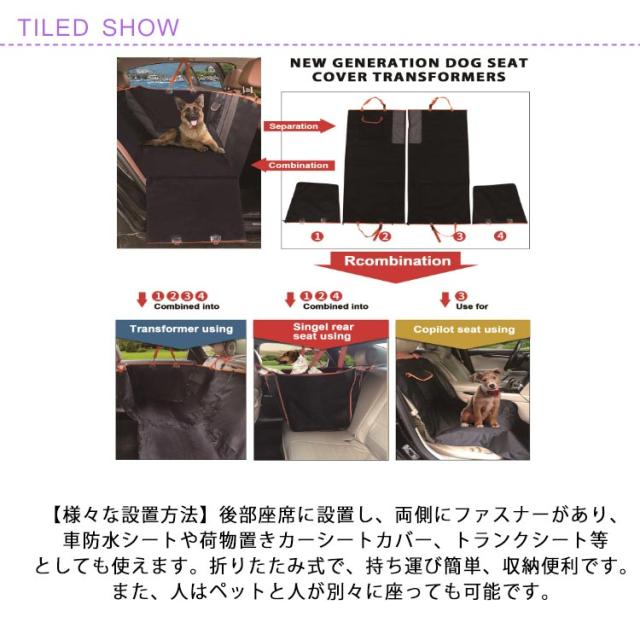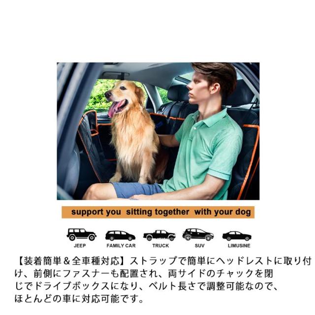 | 【防水仕様&滑り止め】ドライブシートは900Dオックスフォードクロスを採用しており、防水効果抜群、耐久性や耐摩耗性にも優れる、シートの底部は滑り止めメッシュが付いていますので、安全性を高めます。 【様々な設置方法】後部座席に設置し、両側にファスナーがあり、車防水シートや荷物置きカーシートカバー、トランクシート等としても使えます。折りたたみ式で、持ち運び簡単、収納便利です。また、人はペットと人が別々に座っても可能です。 【新型可視メッシュ窓のデザイン】最新版のペットドライブシートは、可視メッシュ窓を追加され、空気の循環に役に立ち、いつでもペットの状況を確認できます。ポケットも付いていますので、ペット用品、ティッシュなどの日常用品を置くことができます。 【お手入れ便利】このペットシートカバーは防水素材なので、ペットのおしっこ、抜け毛、砂、泥などが簡単に掃除できます。皮革製の座にペットの爪からの傷を防止し、いつでもペットがいる車を綺麗に守ります。車後部席に装着するだけで、車内を綺麗に保ちます。抜け毛や汚れ防止に最適! 【装着簡単&全車種対応】ストラップで簡単にヘッドレストに取り付け、前側にファスナーも配置され、両サイドのチャックを閉じでドライブボックスになり、ベルト長さで調整可能なので、ほとんどの車に対応可能です。 | |