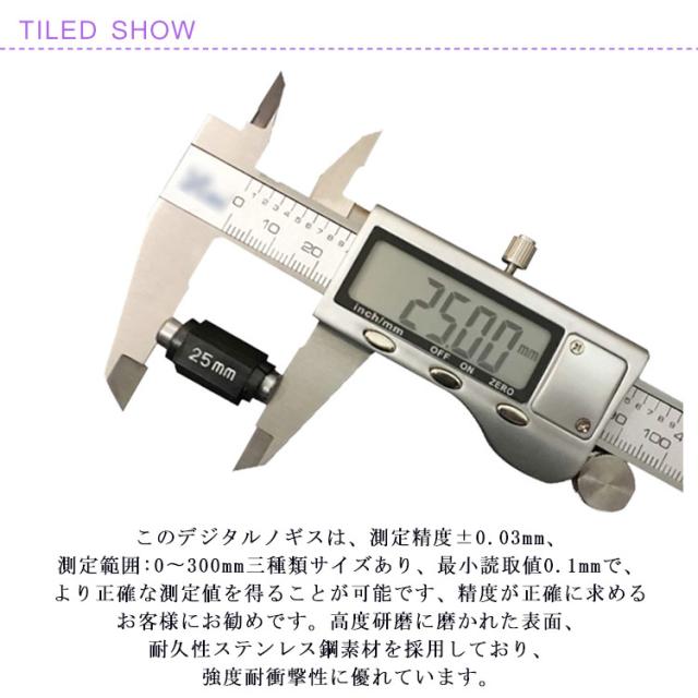 | サイズについての説明 | 測定範囲:0〜300mm 測定精度:±0.03mm 最小読取値:0.01mm |