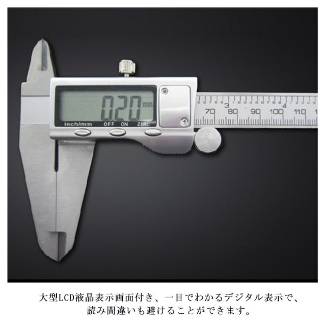 | (高精度)このデジタルノギスは、測定精度±0.03mm、測定範囲:0〜300mm三種類サイズあり、最小読取値0.1mmで、より正確な測定値を得ることが可能です、精度が正確に求めるお客様にお勧めです。高度研磨に磨かれた表面、耐久性ステンレス鋼素材を採用しており、強度耐衝撃性に優れています。 (省エネ)1.5Vボタン電池を搭載、バッテリ寿命を節約するために、5分間使用しない場合電源が自動にオフとなります。小型で持ち運びに便利です。 (様々な測定ニーズに対応)外径、内径、段差、深さなどを簡単に測定できるゼロ補正機能を備えたデジタルキャリパーです。計算を行わずにボタンを押すだけでゼロ点を設定できます。 (LCD液晶画面)大型LCD液晶表示画面付き、一目でわかるデジタル表示で、読み間違いも避けることができます。 (適用場所)常用測量工具として、家庭、学校、研究所、工場、その他の場合に広く応用されています、精密作業に最適です。 | |