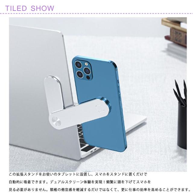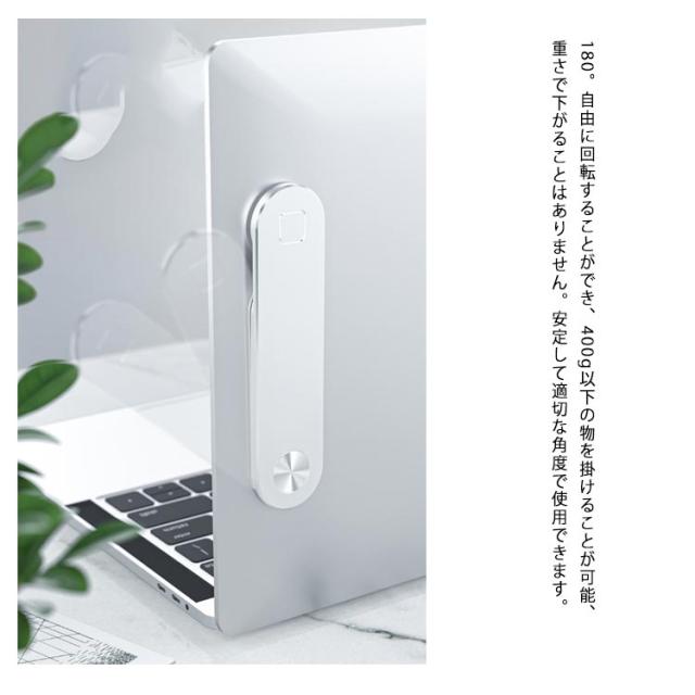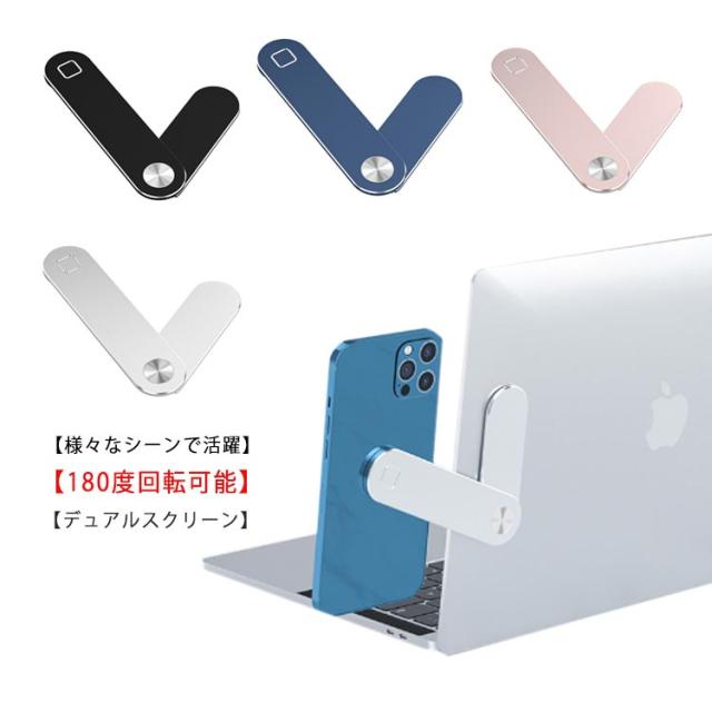 タブレット スマホ 兼用 スタンド 折り畳み式 ノートパソコンに貼り付け PCとスマホ同画面使用 ホルダー 180°角度調整 iPad用スタンド アルミ合金製 取り付け簡単 伸縮式 超薄型