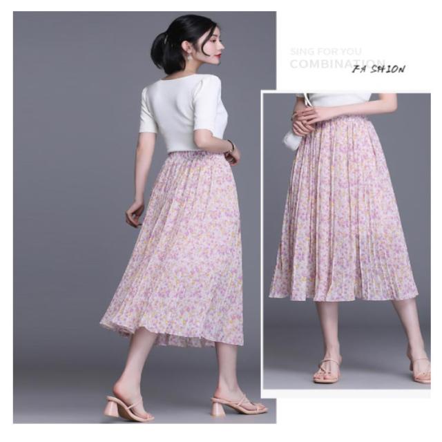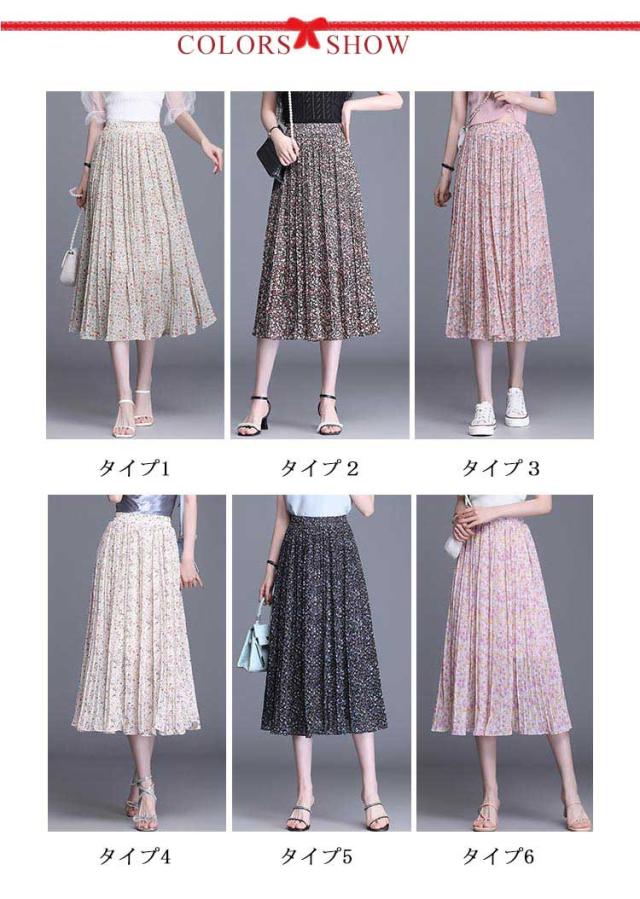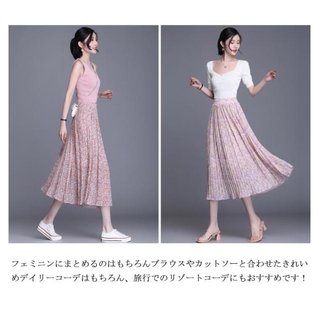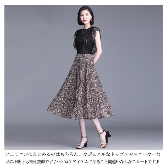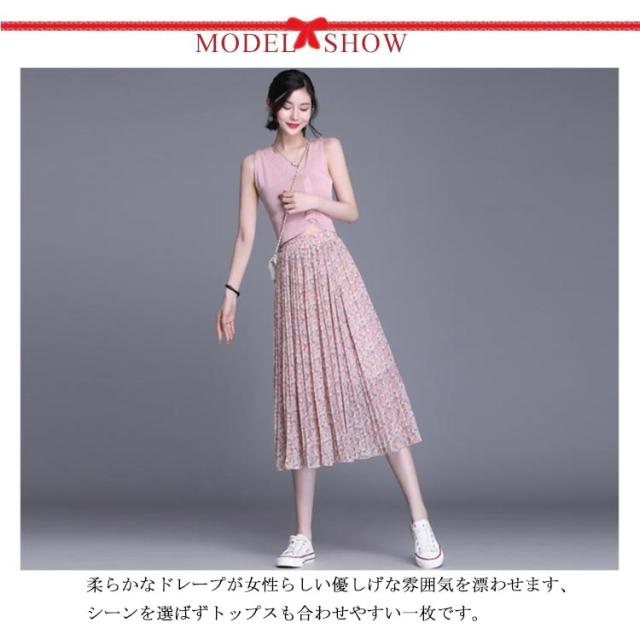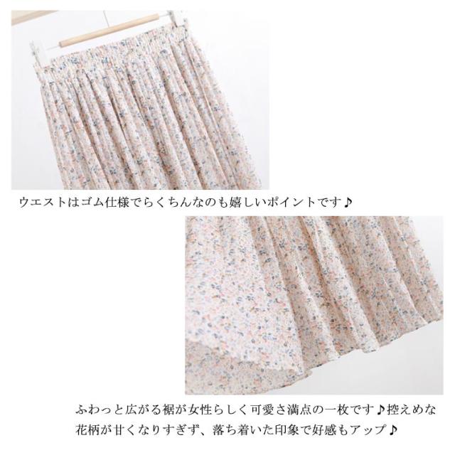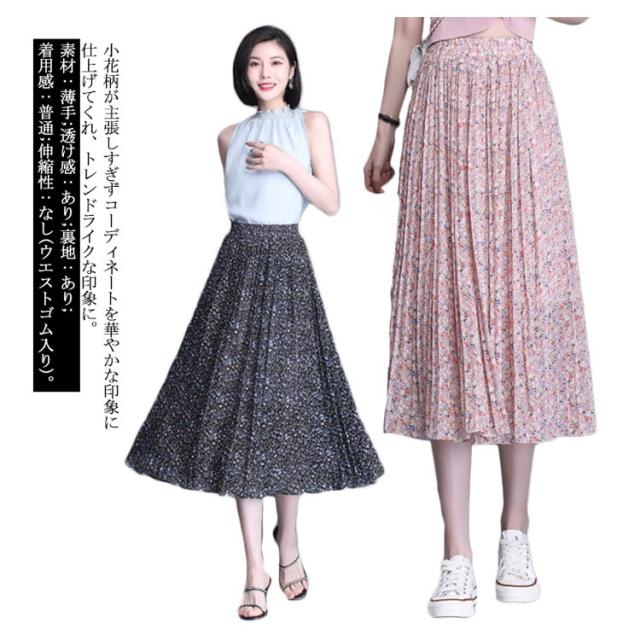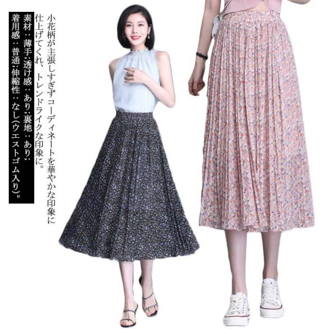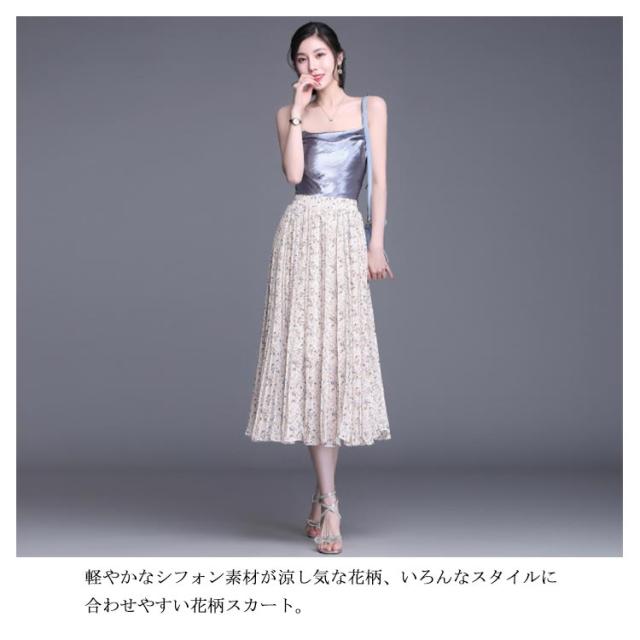 花柄 スカート シフォン レディース ロング プリーツ スカート 8色 大人 可愛い おしゃれ ボトムス Aライン 体型カバー ミモレ丈 ひざ丈 エレガント ハイウエスト ウエストゴム フラワープリント