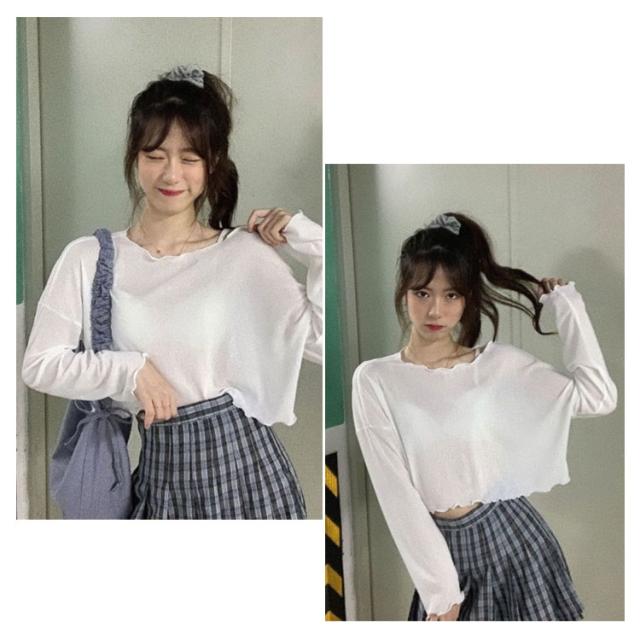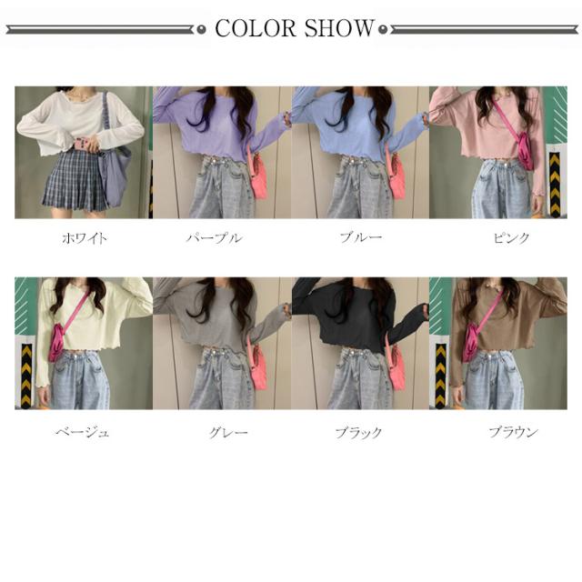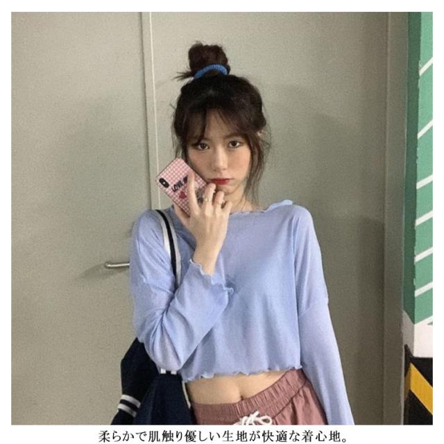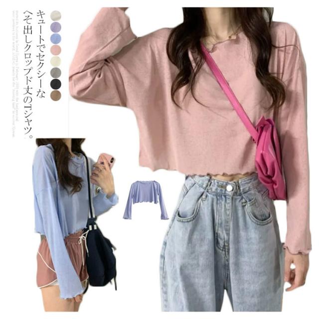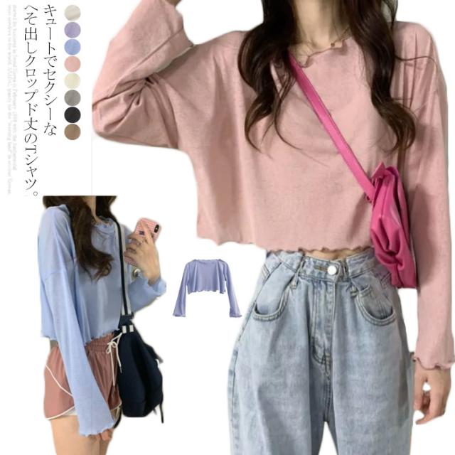 送料無料 クロップド Tシャツ ショート丈 ゆるT レディース クルーネック ロングスリーブ ゆったり へそ出し カットソー トップス 長袖 春 夏 秋 ファッション