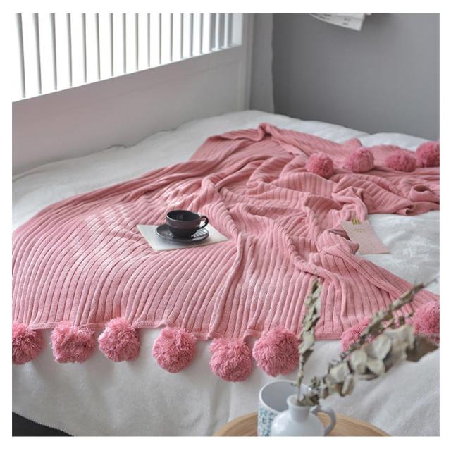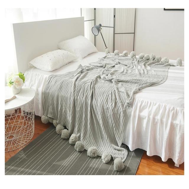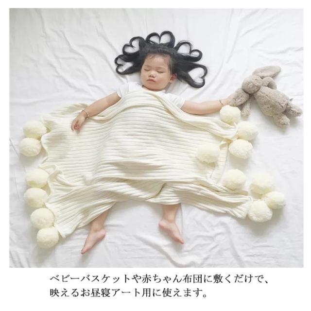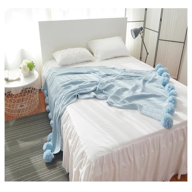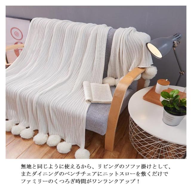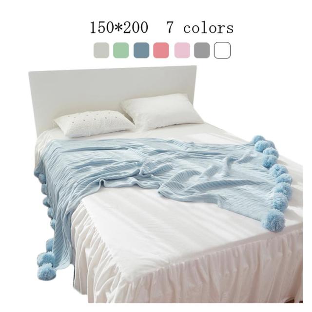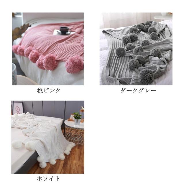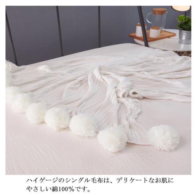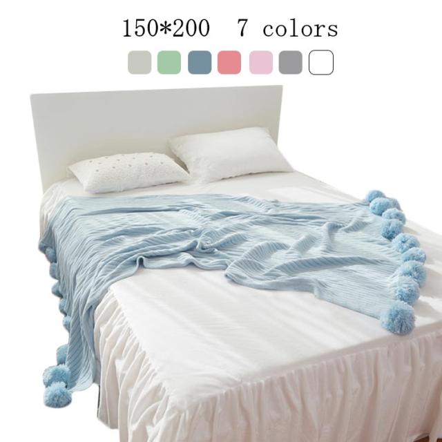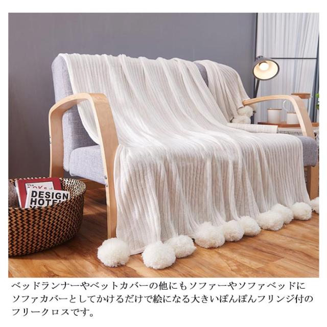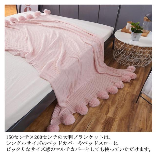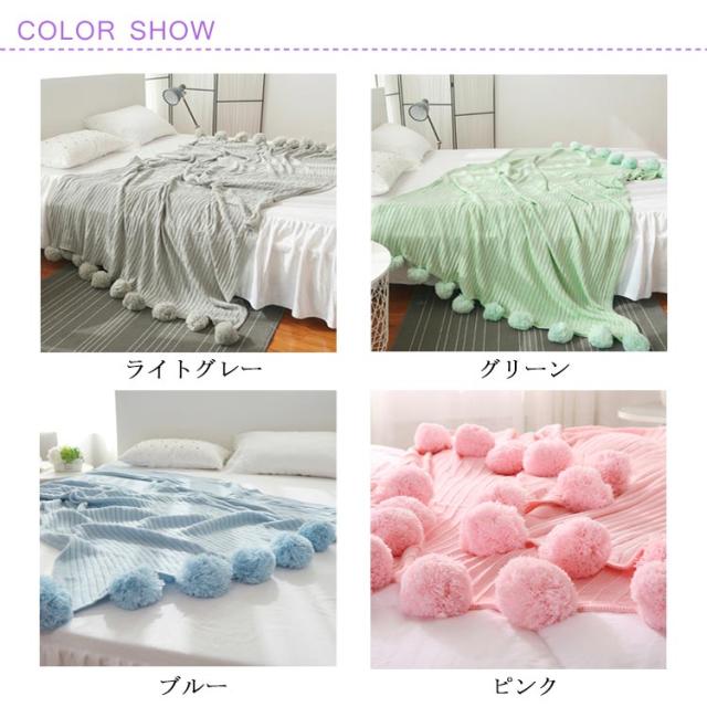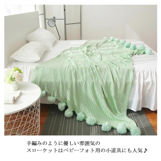 ベッドカバー 北欧風 おしゃれ ブランケット ベッドカバー ポンポン 子供用 グレー グリーン ブルー ピンク ホワイト 200×150cm マルチカバー スロー スローケット