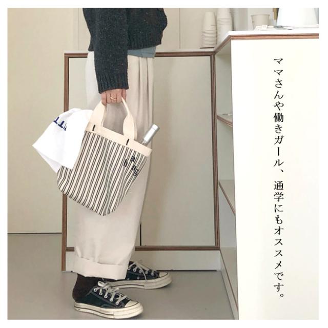 | 通勤通学・休日も! オールシーズン使える! 帆布生地を使用した丈夫で柔らか 持ち運びに便利なコンパクトサイズ、 チョットしたお出かけに最適な小さめトート。 ママさんや働きガール、通学にもオススメです。 | |