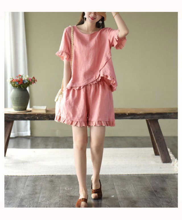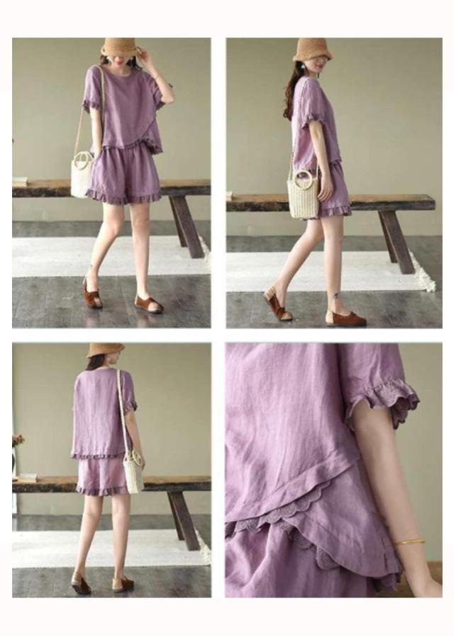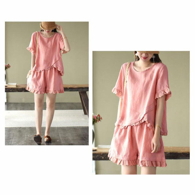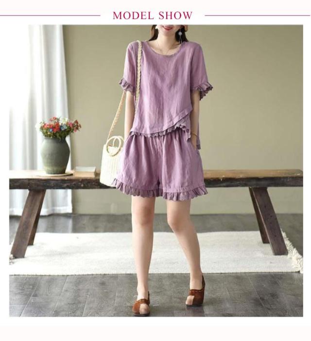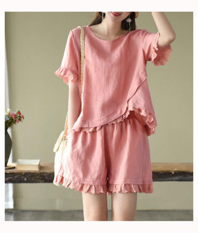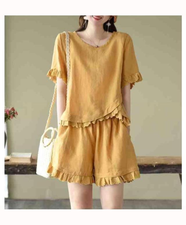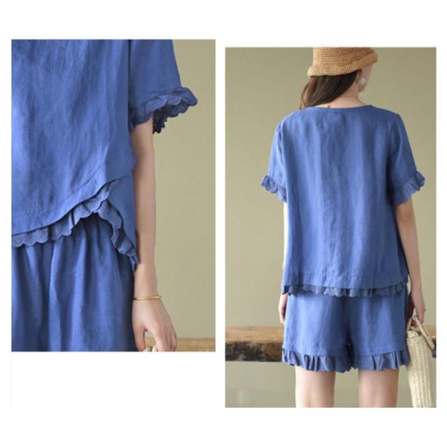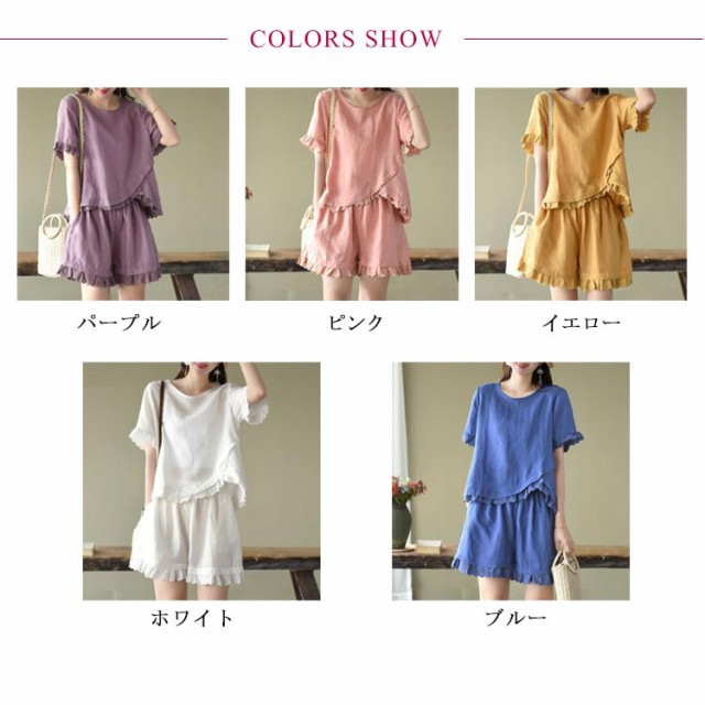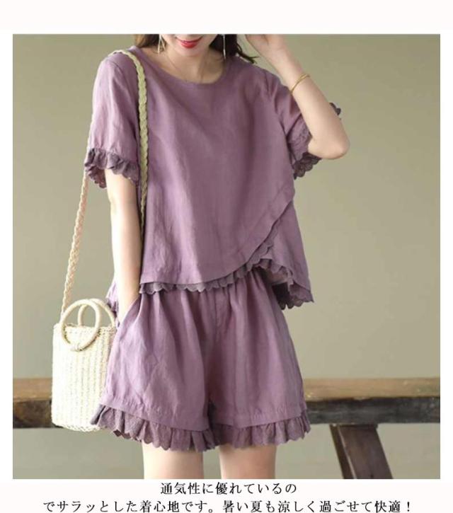 セットアップ 2点セット レディース 半袖ブラウス ショートパンツ 上下セット レース コットン ファッション カジュアル ゆったり 可愛い シンプル 夏物 ルームウェア リラックス お出かけ 送料無料