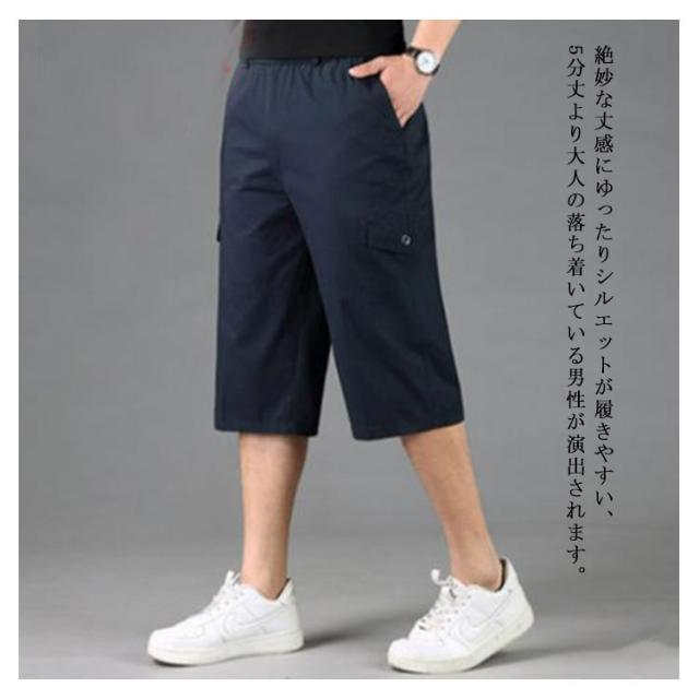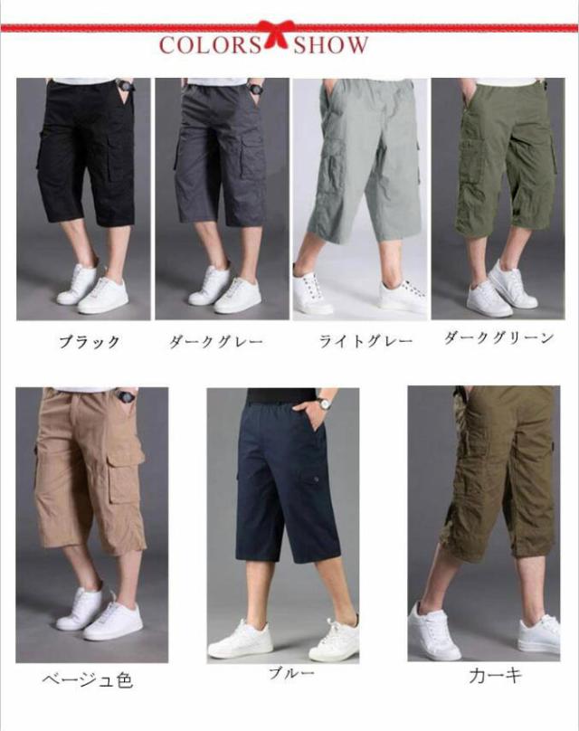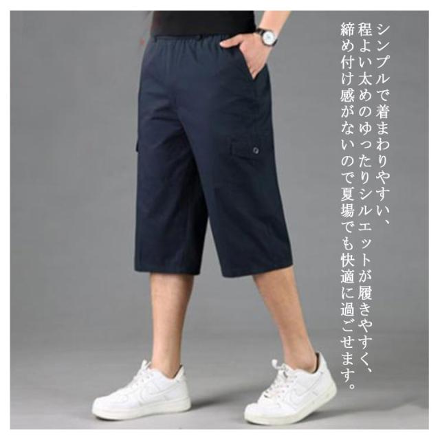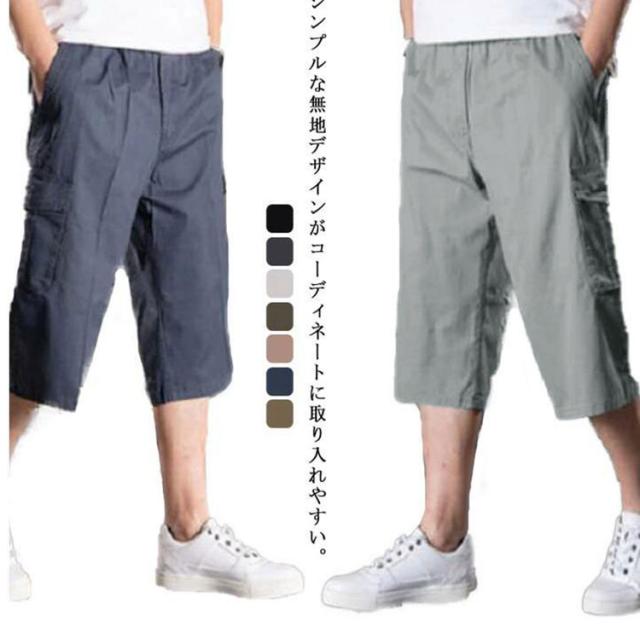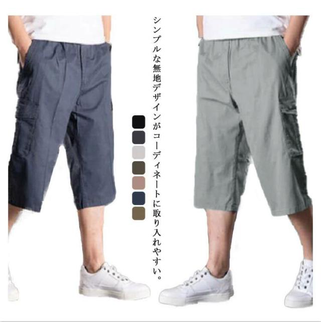カーゴパンツ メンズ ゆったり 7分丈 無地 ハーフパンツ クロップドパンツ カーゴパンツ メンズ 7分丈 ミリタリー ストレッチ ポケット 半ズボン 短パン カジュアル 無地