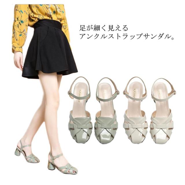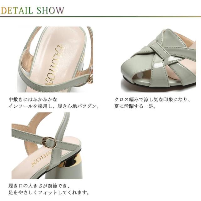 サンダル レディース クロスデザイン アンクルストラップ スクエアトゥ 編み込み 太ヒール チャンキーヒール 5.5CM オフィス ストラップ 痛くない 歩きやすい ハイヒール おしゃれ フェミニン きれいめ ガーリー 通勤