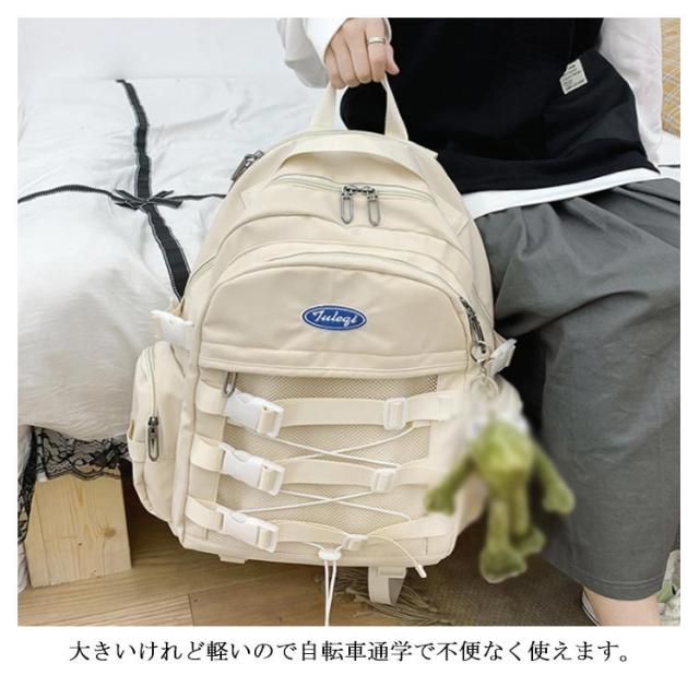 リュック 通学バックパック a4大容量バッグ 韓国ファッション おしゃれ 巾着 ドローコード付き ロゴ ポケット メッシュ 男女兼用 ユニセックス フラップリュック アウトドア キャンプ 仕事 旅行 おしゃれ かっこいい 可愛い