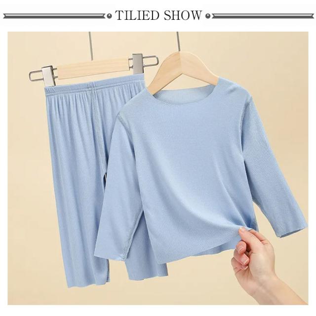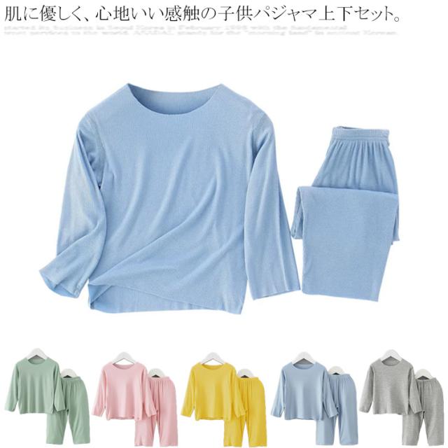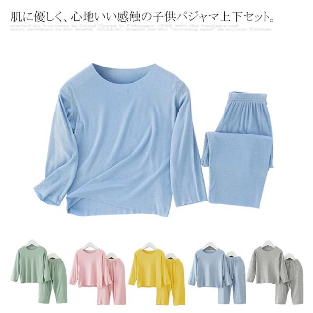 送料無料 子供パジャマ キッズ ルームウェア 寝巻き 女の子 部屋着 男の子 セットアップ ベビー ロング丈パンツ 長袖 薄手 通気 肌に優しい シームレス 無地 涼感 涼しい モダール 爽やか 夏用 80 90 100 110 120 130