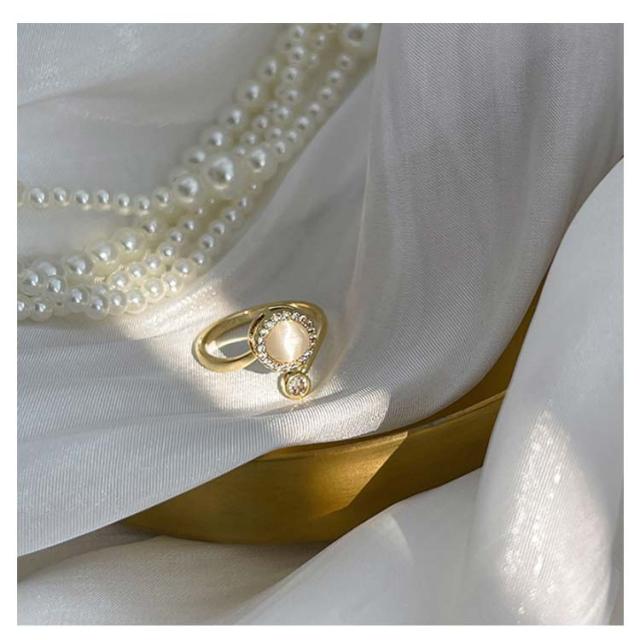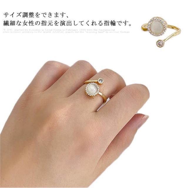 レディース 指輪 大粒 一粒 リング キャツアイ ジルコン 細身 細め 調整可能 上品 おしゃれ 華奢 猫目石 ピンキーリング かわいい カジュアル シンプル きれいめ アクセサリー ジュエリー 女性 送料無料