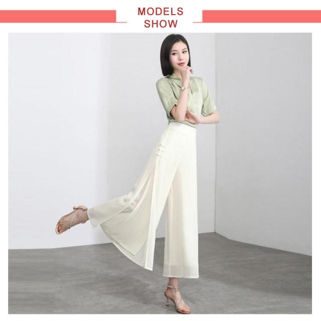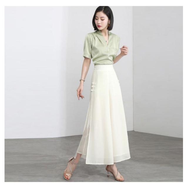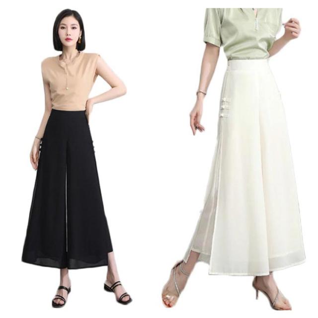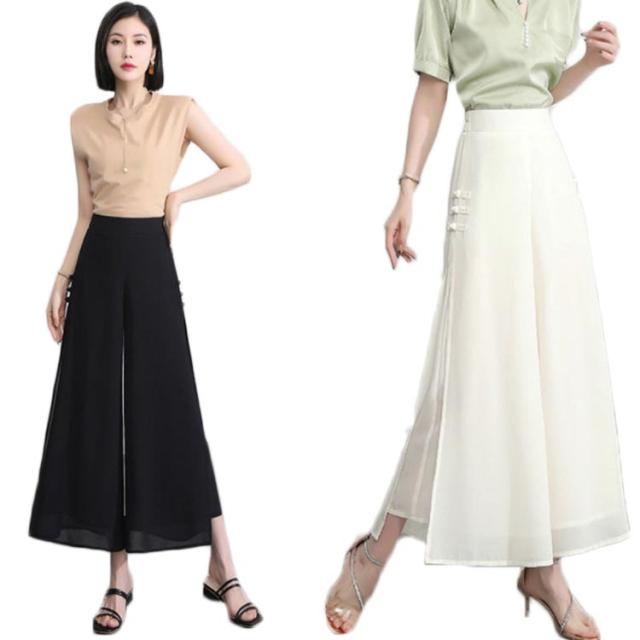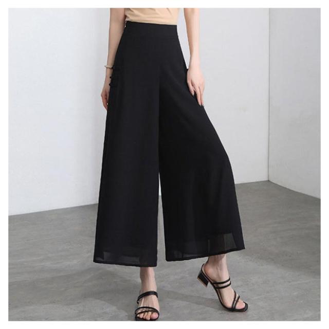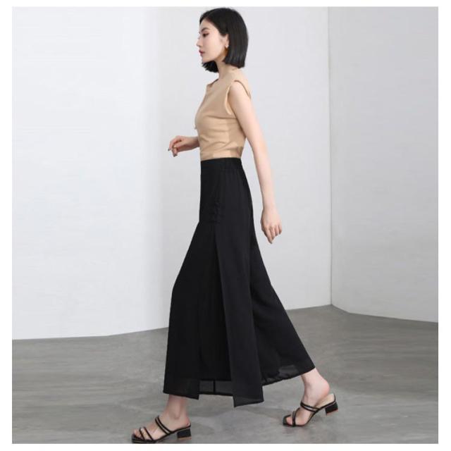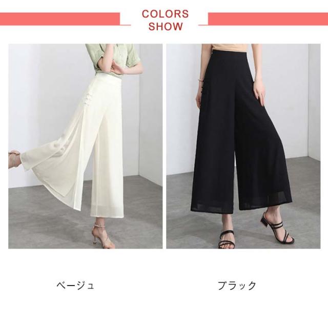 ワイドパンツ レディース 夏 スリット入り ハイウエスト ゆったり スパッツ シフォンパンツ 九分丈 着痩せ ハイウエスト 無地 送料無料 シンプル カジュアル ガウチョパンツ お洒落 体型カバー ボトムス 夏新作