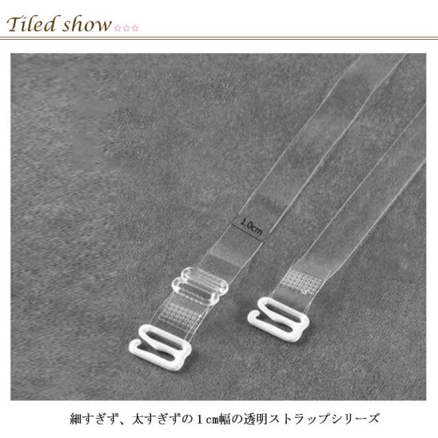 | ドレスを着るときや、肩出しスタイルに目立たないストラップ。 細すぎず、太すぎずの1cm幅の透明ストラップシリーズ 目立たないヌーディストラップ 折れにくい金属Z字カン アレルギーを気にされる方でも安心してご利用いただけるお肌に優しい材質 長さ調節のできるアジャスター付き | |