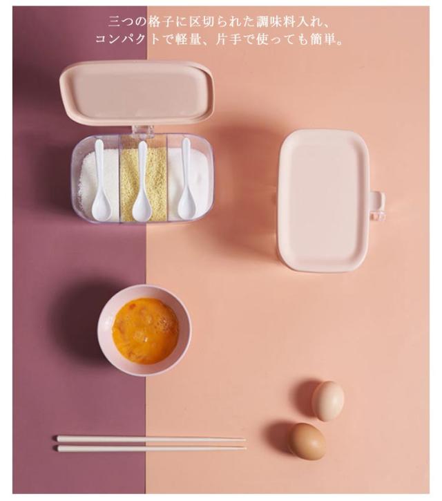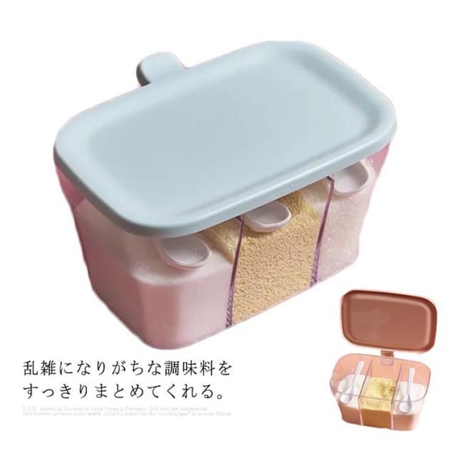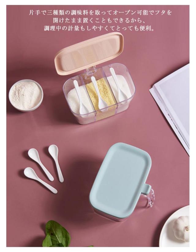 | 乱雑になりがちな調味料をすっきりまとめてくれる。 片手で三種類の調味料を取ってオープン可能でフタを開けたまま置くこともできるから、調理中の計量もしやすくてとっても便利。 三つの格子に区切られた調味料入れ、コンパクトで軽量、片手で使っても簡単。 | |
