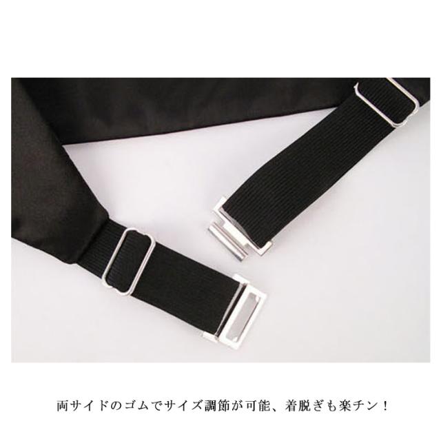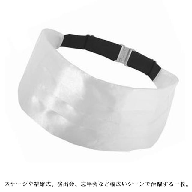 | フォーマルな装いに欠かせないカマーバンド。 横の部分に折り目の入ったヒダがおしゃれ! 腰の後ろで簡単に留められる金具止め仕様タイプ。 両サイドのゴムでサイズ調節が可能、着脱ぎも楽チン! ステージや結婚式、演出会、忘年会など幅広いシーンで活躍する一枚。 | |