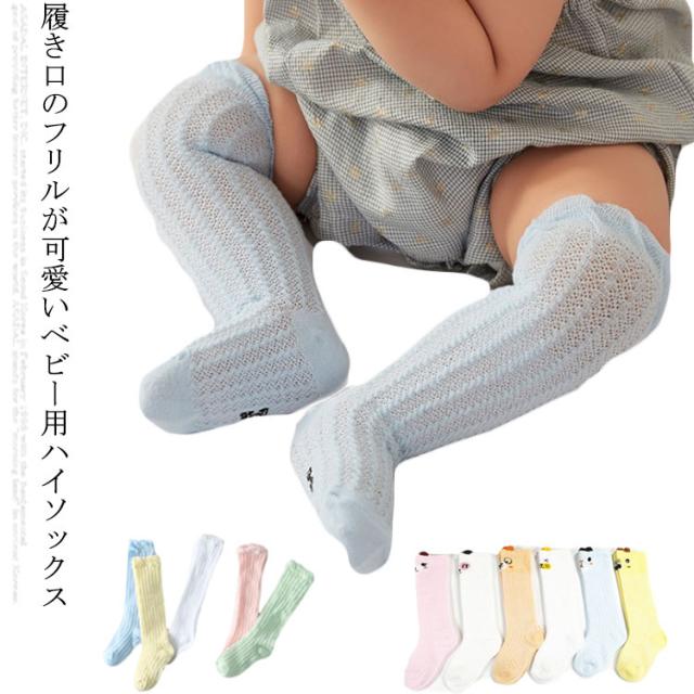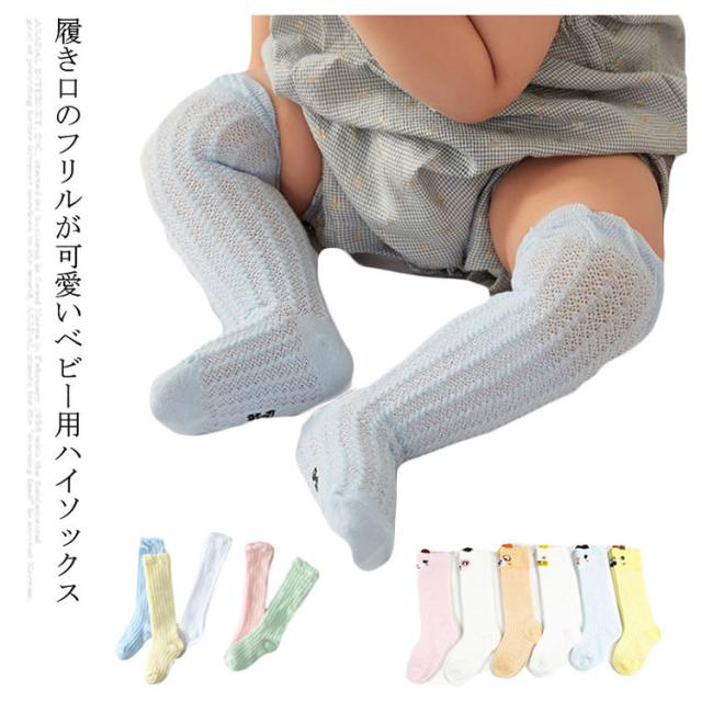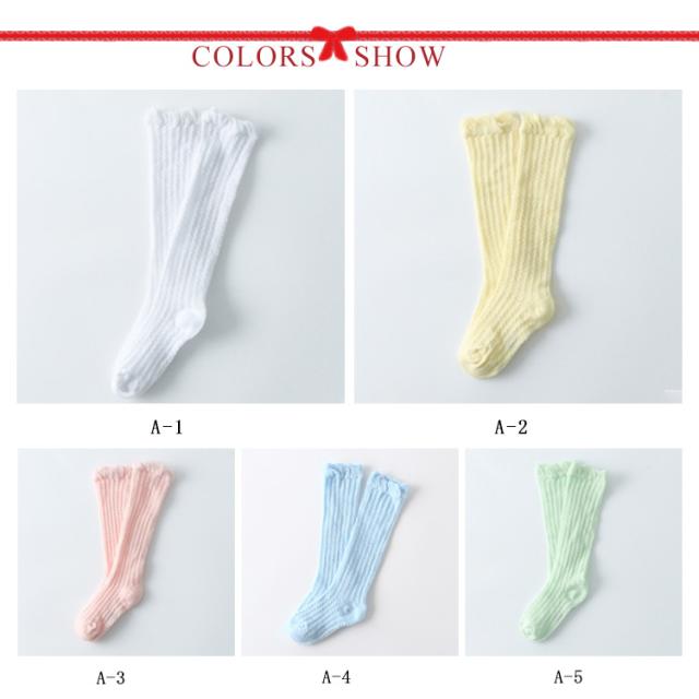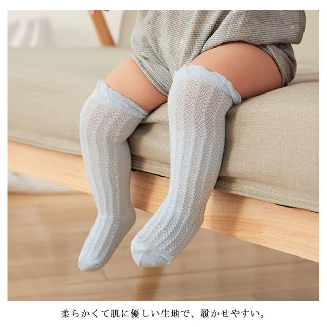 【送料無料】赤ちゃん ニーソックス ベビー 靴下 子供用靴下 レッグウォーマー 女の子 男の子 赤ちゃん レース ハイソックス 無地 メッシュ 透かし編み 薄手 ベビー 冷房よけ 冷え防止 靴下