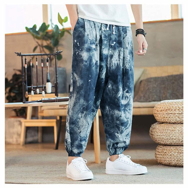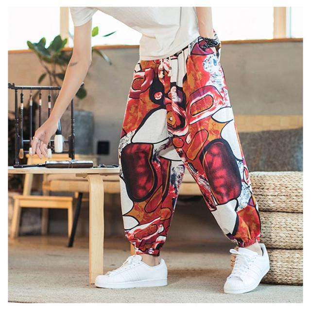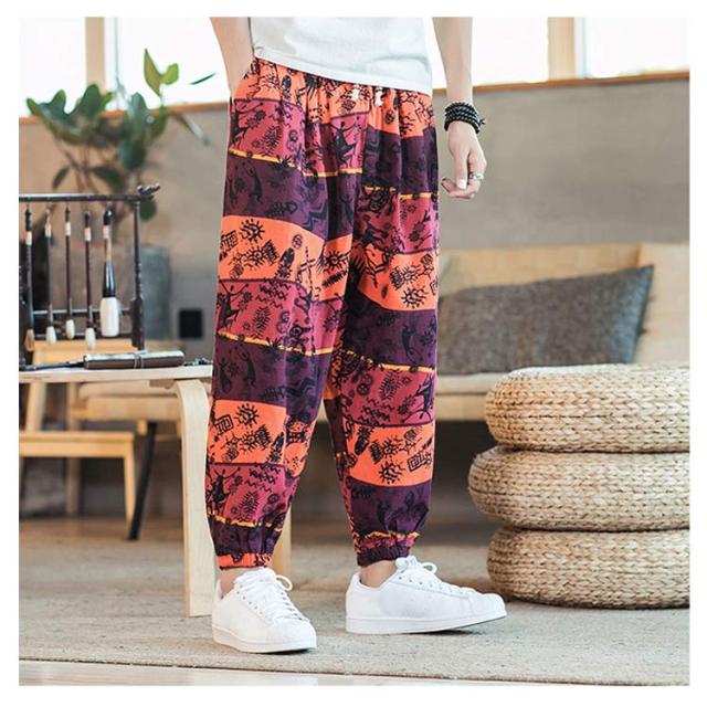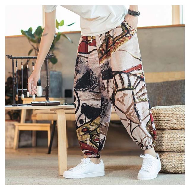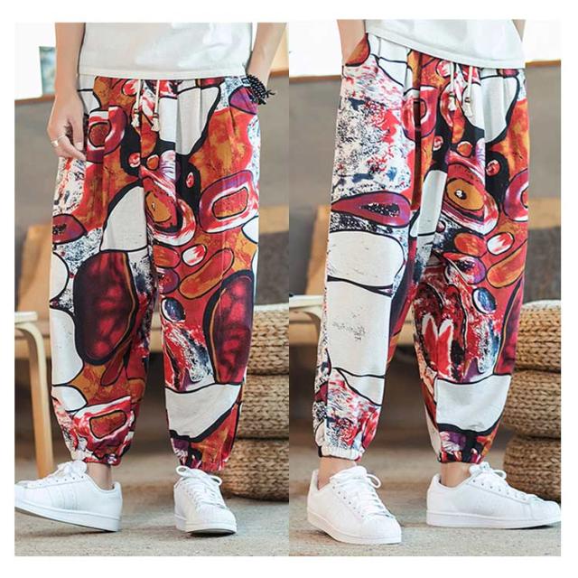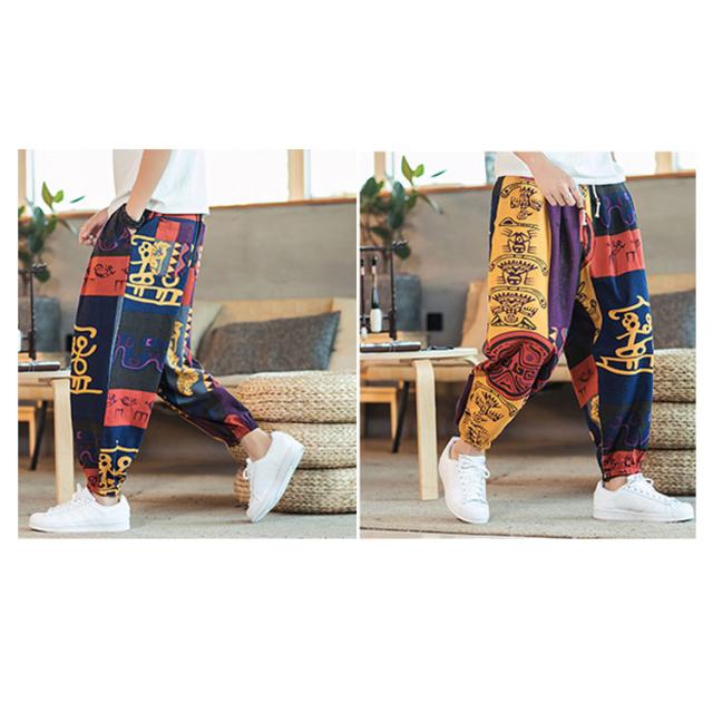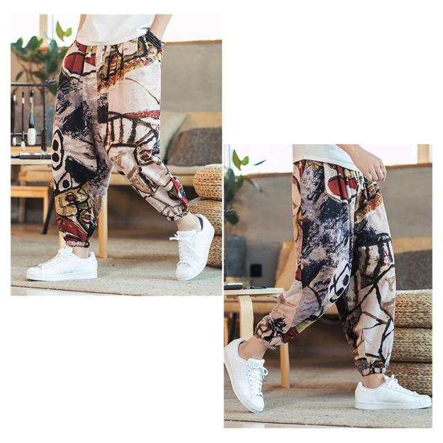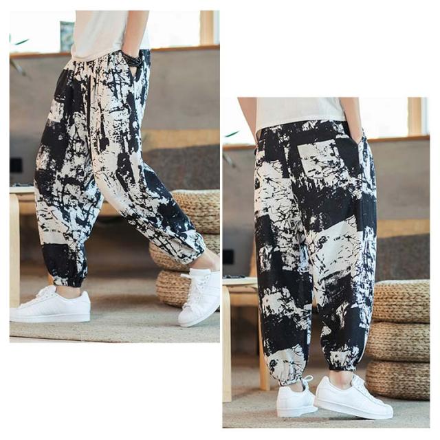 サルエルパンツ クロップドパンツ リネン パンツ 7分丈 9分丈 アラジンパンツ タイパンツ メンズ ボトムス オーバーサイズ エスニック 幾何学柄 薄手 綿麻 カジュアル コーデ ゆったり 送料無料 敬老の日