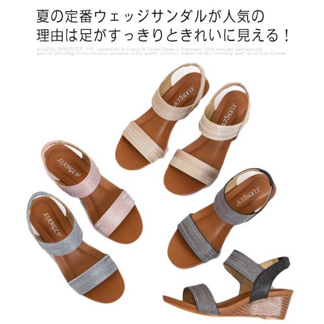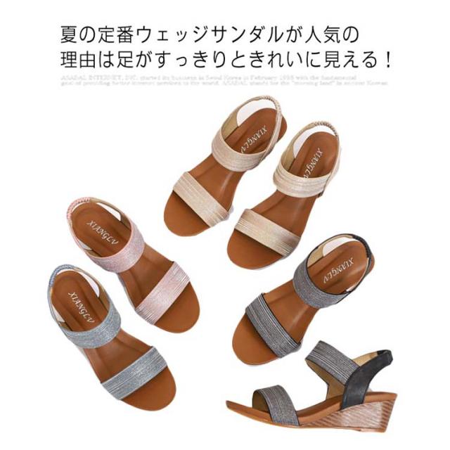 | 夏の定番ウェッジサンダルが人気の理由は足がすっきりときれいに見える! 大人っぽく履けてとっても楽チン!という魅力的なポイントが。 見た目に大人っぽく高級感がある仕様にこだわった当店の夏イチオシアイテム、ぜひ一度お試しください!! | |