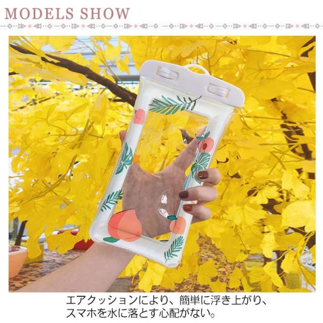 | かわいいデザインの完全防水スマホ用ポーチです。 エアクッションにより、簡単に浮き上がり、スマホを水に落とす心配がない。 エアクッション層がある、高い耐衝撃性を誇り、スマホをしっかりと守ります。 高透明度の素材を使用して、水中でも鮮やかな写真を撮れます。 タッチスクリーンをスムーズに使用可能、顔認証も利用できます。 ストラップで取り付ければ、首やお好きな場所に掛けることができます。 | |
