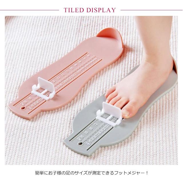 | 簡単にお子様の足のサイズが測定できるフットメジャー! 後ろにかかとをピタッと合わせ、使用簡単!スケーラーを指先に合わせるだけ! お子様の成長の記録に。 6cmから20cmまで測定可能。 | |