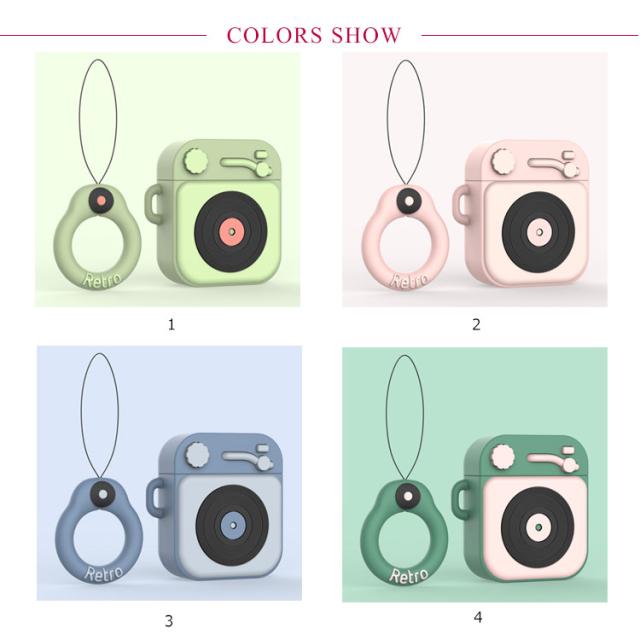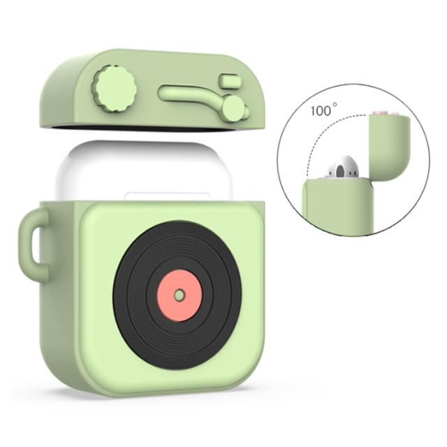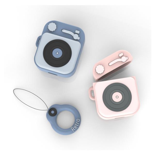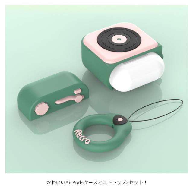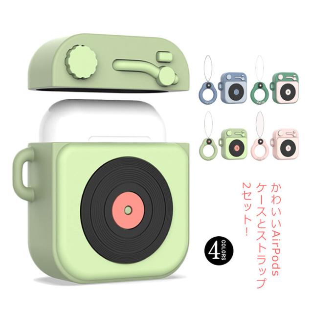 AirPods ケース エアーポッド 第1世代 第2世代 ケース シリコン カバー 送料無料 airpods 保護ケース air pods カバー イヤホンケース iPhone アップル イヤホン 保護カバー 保護収納 ソフトケース 蓄音機ケース レトロ ストラップ付 落下防止