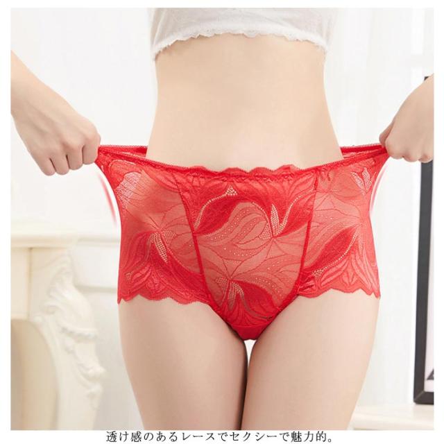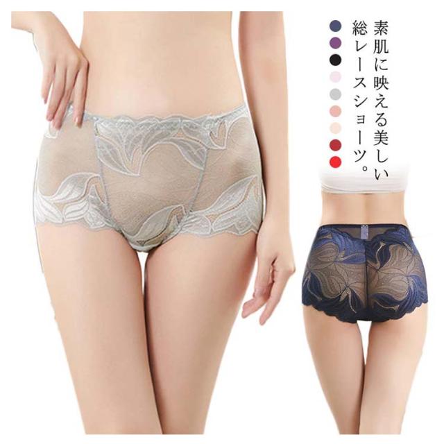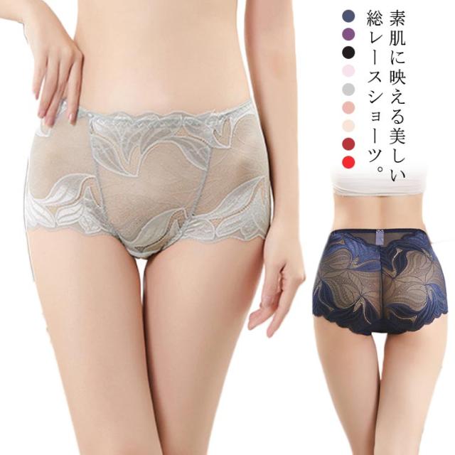 送料無料 総レースショーツ クロッチ綿 抗菌 フラワーレース 花柄 ボックスショーツ セクシー 透け感 ひびきにくい 深め インナー 下着 伸縮性 婦人用