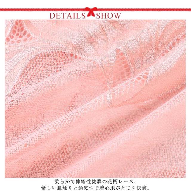 | 素肌に映える美しい総レースショーツ。 柔らかで伸縮性抜群の花柄レース、優しい肌触りと通気性で着心地がとても快適。 総レースだから響きにくく、食い込みにくいので跡がつきにくいのもポイント☆ 透け感のあるレースでセクシーで魅力的。 デリケートのクロッチ部分は抗菌加工のコットン素材で、女性の健康をサポート。 | |