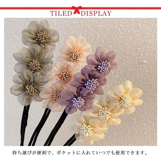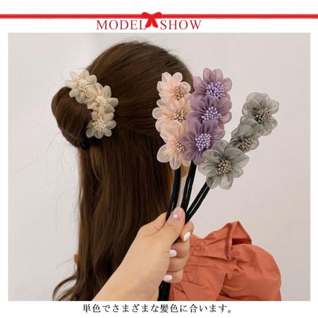 | チュール素材で作られたの花のデザインは大人かわいいエレガントなイメージを与えます。 単色でさまざまな髪色に合います。 ワイヤーが細いので、少ない髪の量の方にもおすすめです。 使いやすいので、わずか数十秒でお団子形が出来上がります。 持ち運びが便利で、ポケットに入れていつでも使用できます。 浴衣にオススメ!簡単にできる可愛いおだんごヘアー♪ | |