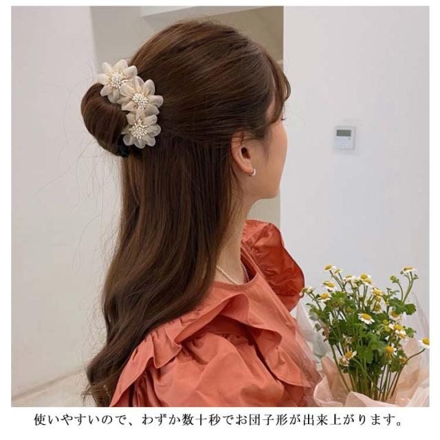【送料無料】おだんご お団子ドーナツ お団子 簡単 ヘアアクセサリー まとめ髪 花火大会 外出 ビーチ 夏祭り 女性 女の子 髪飾り ワイヤー ヘアー 韓国 花柄 花 細い髪 少ない髪の量 シンプル 大人かわいい 団子