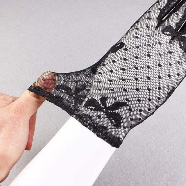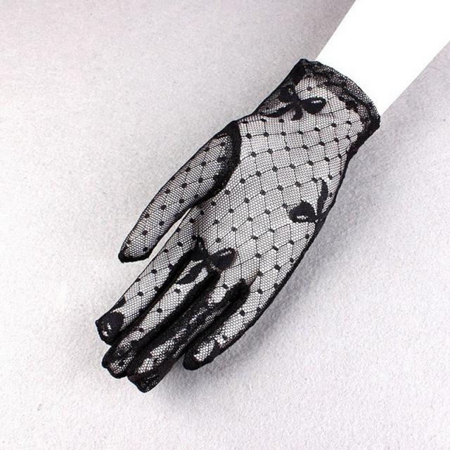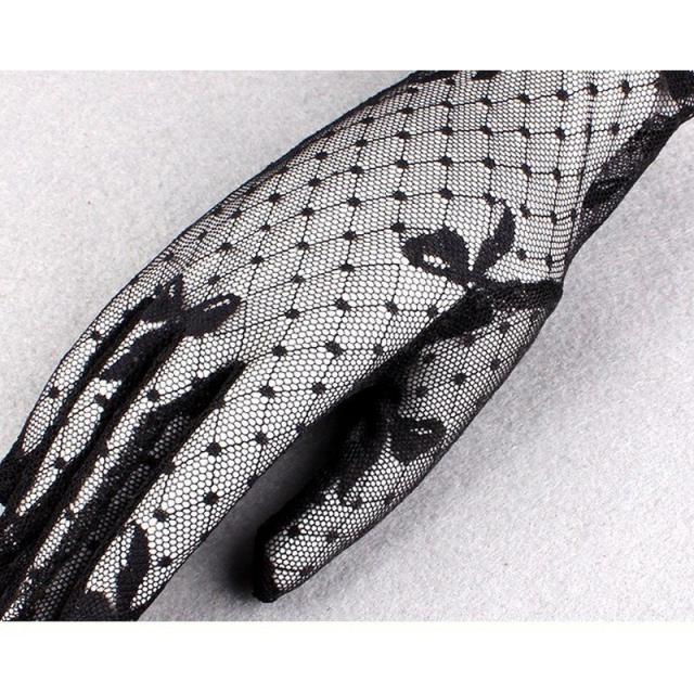 レース手袋 グローブ レディース 婦人用 総レース リボン柄 ひし形 運転 ステージ衣装 発表会 ダンス パーティー ブライダル コスプレ 着物 おし