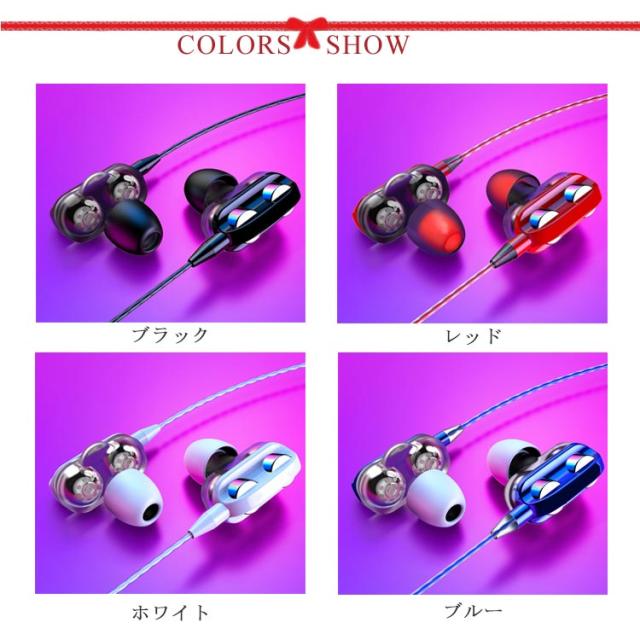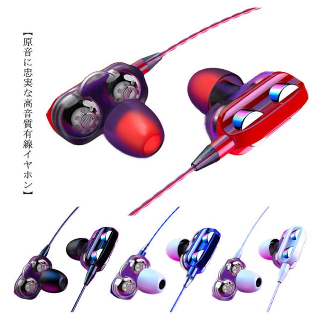 イヤホン 有線 イヤフォン マイク付き 重低音 高音質 カナル型 二重運動輪 四核 デュアルドライバー リモコン付き 通話可能 遮音性 3.5mm オシャレ かっこいい スタイリッシュ スポーツ 任天堂 スイッチ 携帯電話 車
