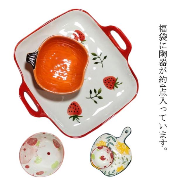 | 福袋に陶器が約4点入っています。 豊富なカラーと模様〜お子様もお好きそう 柄と形状はバラバラに入っていますが、どんなものが届くのか、楽しみにしてください。 黒点、ピンホール、傷、釉薬のムラ、ゆがみ、がたつき、色の濃淡などは正常商品となっております。 商品の特性上、破損による代品手配の場合、同じものはお送りできません。 | |