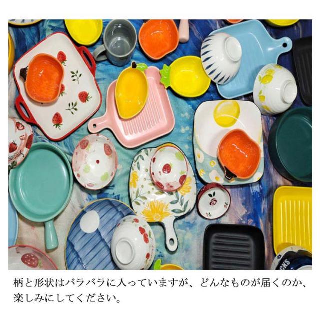 | サイズについての説明 | 柄や形状はバラバラです。 全ての食器はランダムにまとめて販売している商品となります。 |