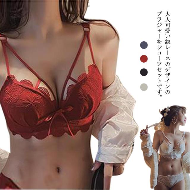 レディース ブラジャー ショーツセット インナー 夏ブラ 三角ブラ パット付き レディース レースブラ 上下2点セット セクシー ランジェリー 欧米スタイル 人気 総レースブラ&ショーツ 盛りブラ 透け感 3/4カップ