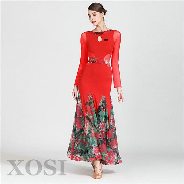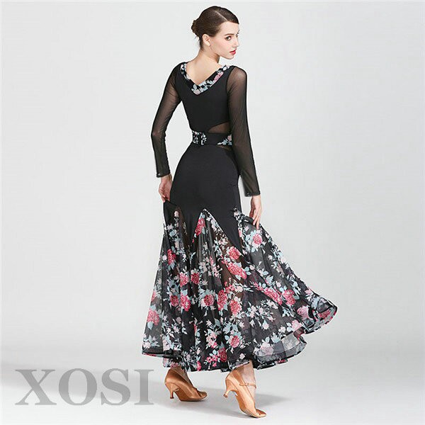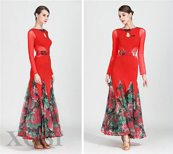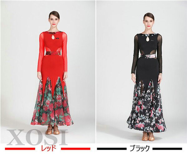 社交ダンス衣装 ワンピース ダンス練習着 ステージ衣装 モダンドレス ワンピース 上品 長袖 2色 ワルツ服 競技用 インターナショナルダンス 舞台衣装