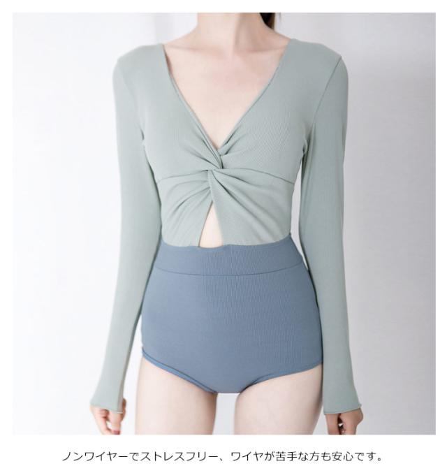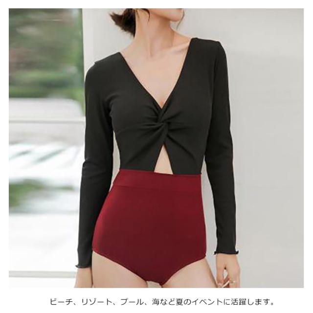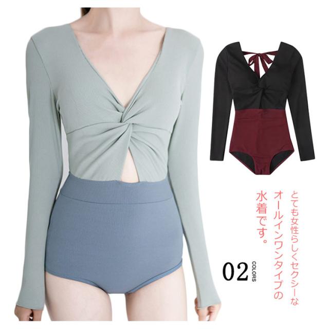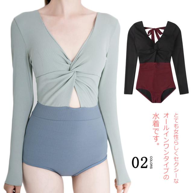 水着 レディース ワンピース 体型カバー ビーチウェア オールインワン パット付き 長袖 モノキニ セクシー スイムウェア 海水浴 水泳 着痩せ 送料無料