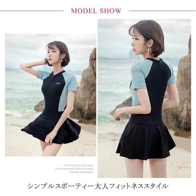 水着 レディース 体型カバー ワンピース フィットネス スイムいウェア ファッション【送料無料】運動 プール 海 ジム スポーツ 韓国風 おしゃれ 大人 黒 ブラック 大きいサイズ M L XL 2XL 3XL