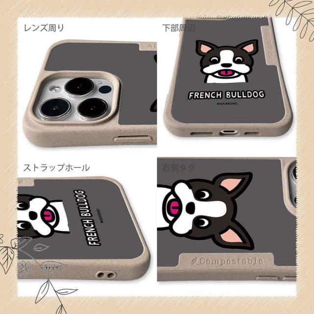 コンポスケース & 着せ替え デザインシート セット Google Pixel9a Pixel9 Pro XL Pixel8a Pixel8 Pro Xperia 10 V ケース 背面 生分解性 ワカボンド WAKAMAKAシリーズ フレンチブルドッグのフレブルルン
