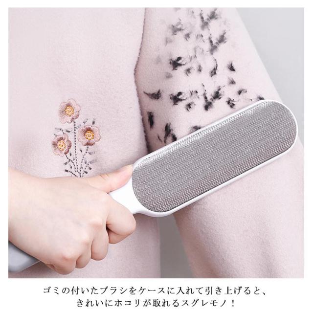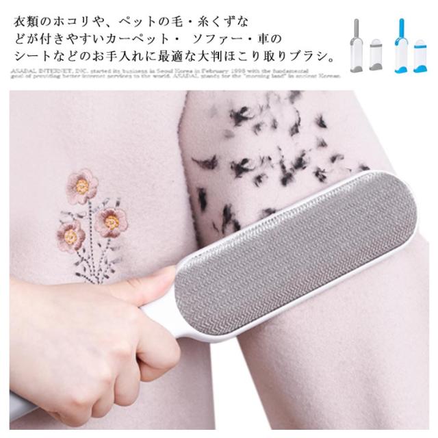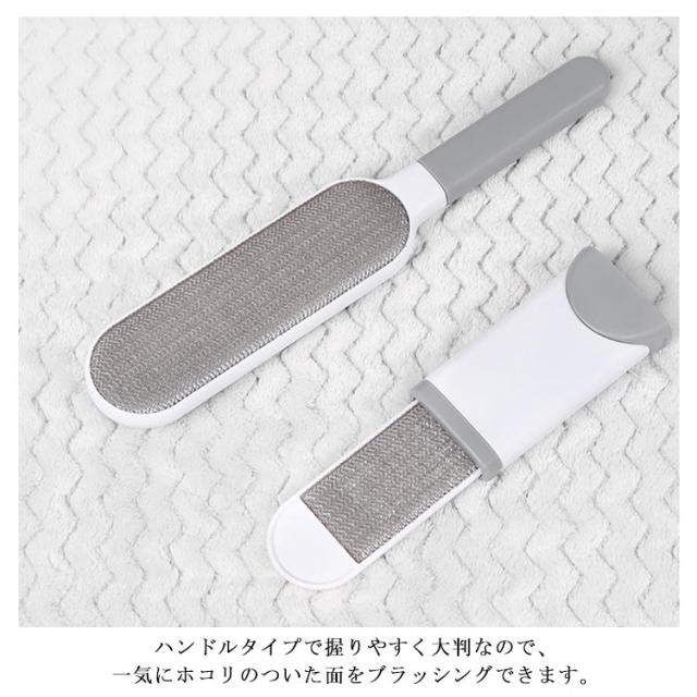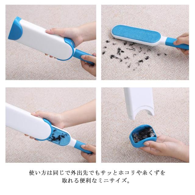 | 衣類のホコリや、ペットの毛・糸くずなどが付きやすいカーペット・ ソファー・車のシートなどのお手入れに最適な大判ほこり取りブラシ。 ハンドルタイプで握りやすく大判なので、一気にホコリのついた面をブラッシングできます。 両面使える点もうれしいポイント! ゴミの付いたブラシをケースに入れて引き上げると、きれいにホコリが取れるスグレモノ! ケース内に溜まったほこりは、フタを開ければ簡単に捨てられます。 ビッグブラシのミニ版のブラシが付属しています。 使い方は同じで外出先でもサッとホコリや糸くずを取れる便利なミニサイズ。 | |