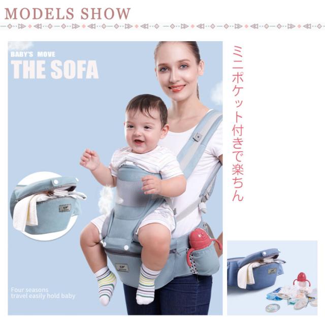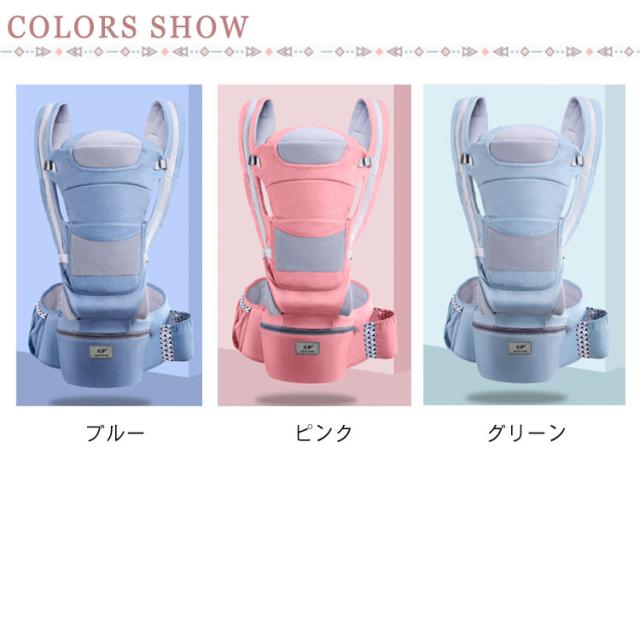 抱っこ紐 抱っこひも だっこひも 新生児から使える ヒップシート 腰ベルト あかちゃんだっこ 新生児 男性も使える 前向き抱っこ だっこひも 多機能 赤ちゃん ベビー ブルー ピンク グリーン 便利 柔らかい 出産祝い
