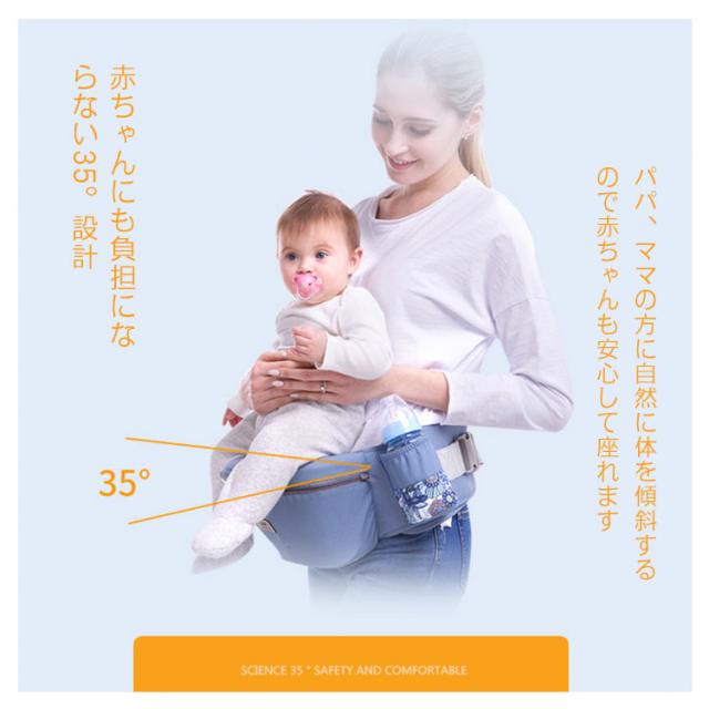 | 赤ちゃんを座らせて抱っこできるヒップシートは、短時間の抱っこ時に便利。 0月から48ヶ月まで シートが新生児から幼児まで、成長に合わせて調節出来ます。 ソファーみたい柔らかいヒップシート、ベビーは長く座っても楽だ♪ | |